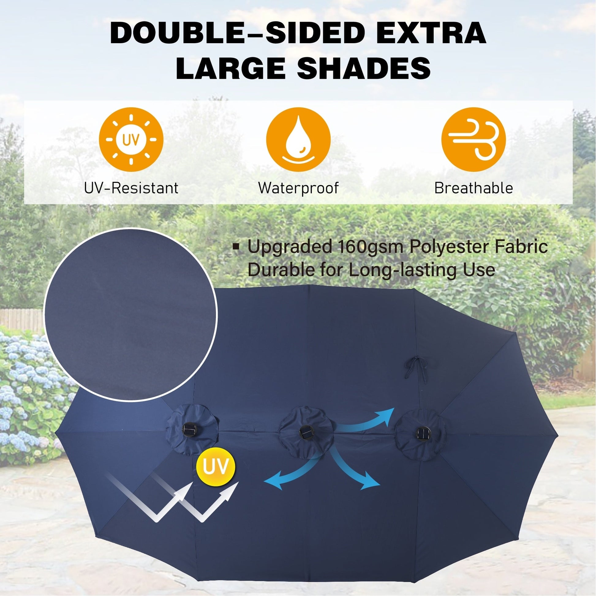 - Protection UV avancée et résistance à l'eau : Fabriqué en tissu 100 % polyester de haute qualité, notre parasol de terrasse offre une protection exceptionnelle contre les rayons UV nocifs. Respirant pour une excellente circulation de l'air, il est également résistant à l'eau pour rester en parfait état sous une légère averse.