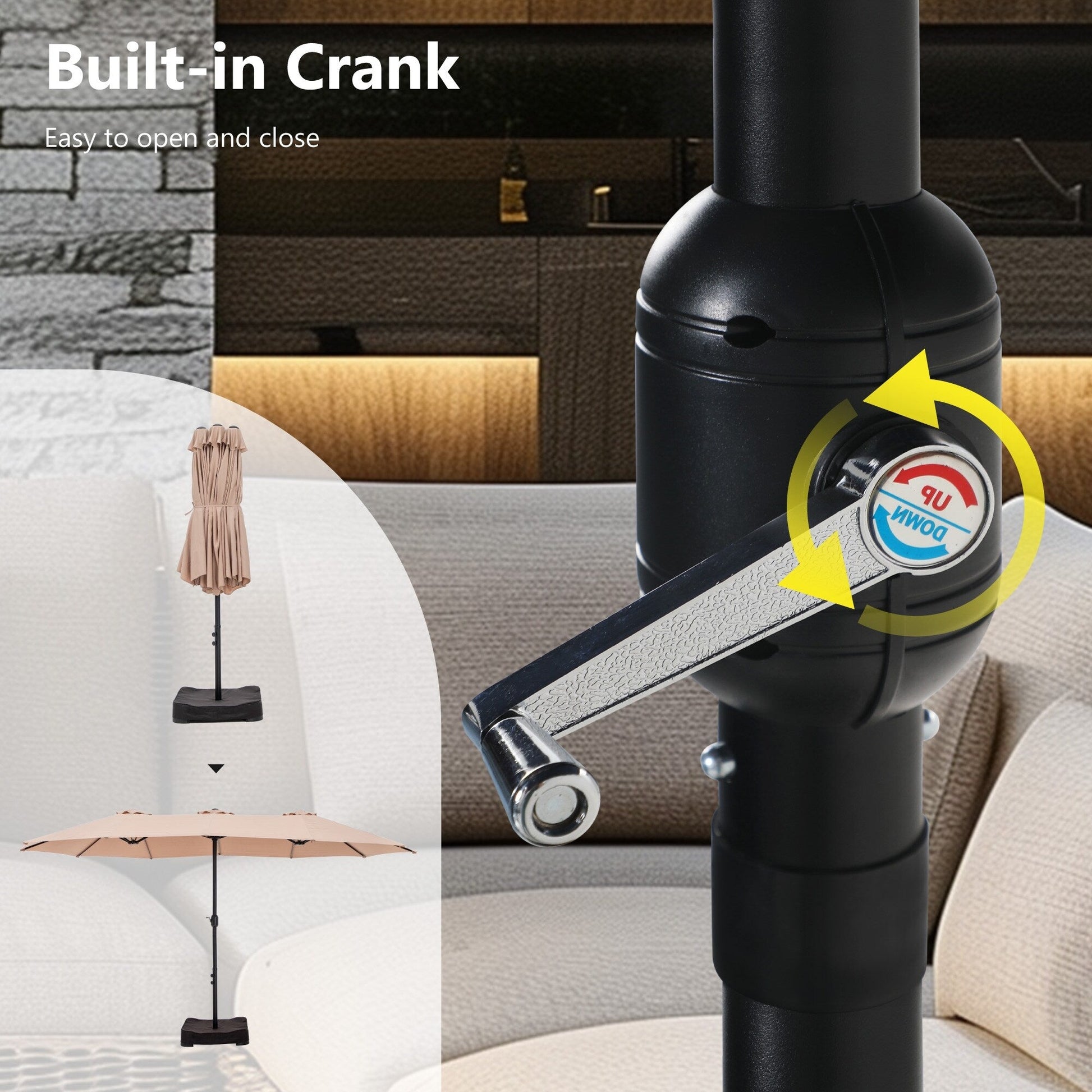 - Conception robuste en acier : Doté de 12 baleines robustes et d'un mât central robuste (5,8 à 6,4 cm de diamètre), ce parasol de terrasse est conçu pour durer et résister à la rouille. Profitez d'une ombre fiable et d'une ouverture et d'une fermeture faciles grâce à son mécanisme à manivelle qui simplifie l'installation.