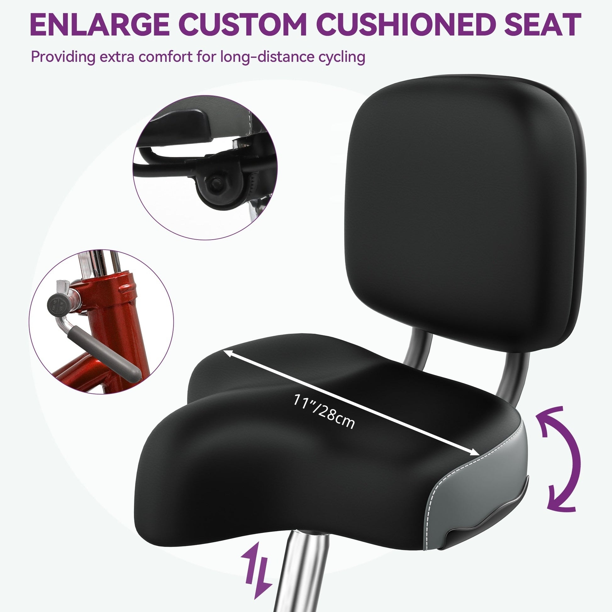 - Le siège à coussin plus large est 2 pouces plus large que les autres sièges