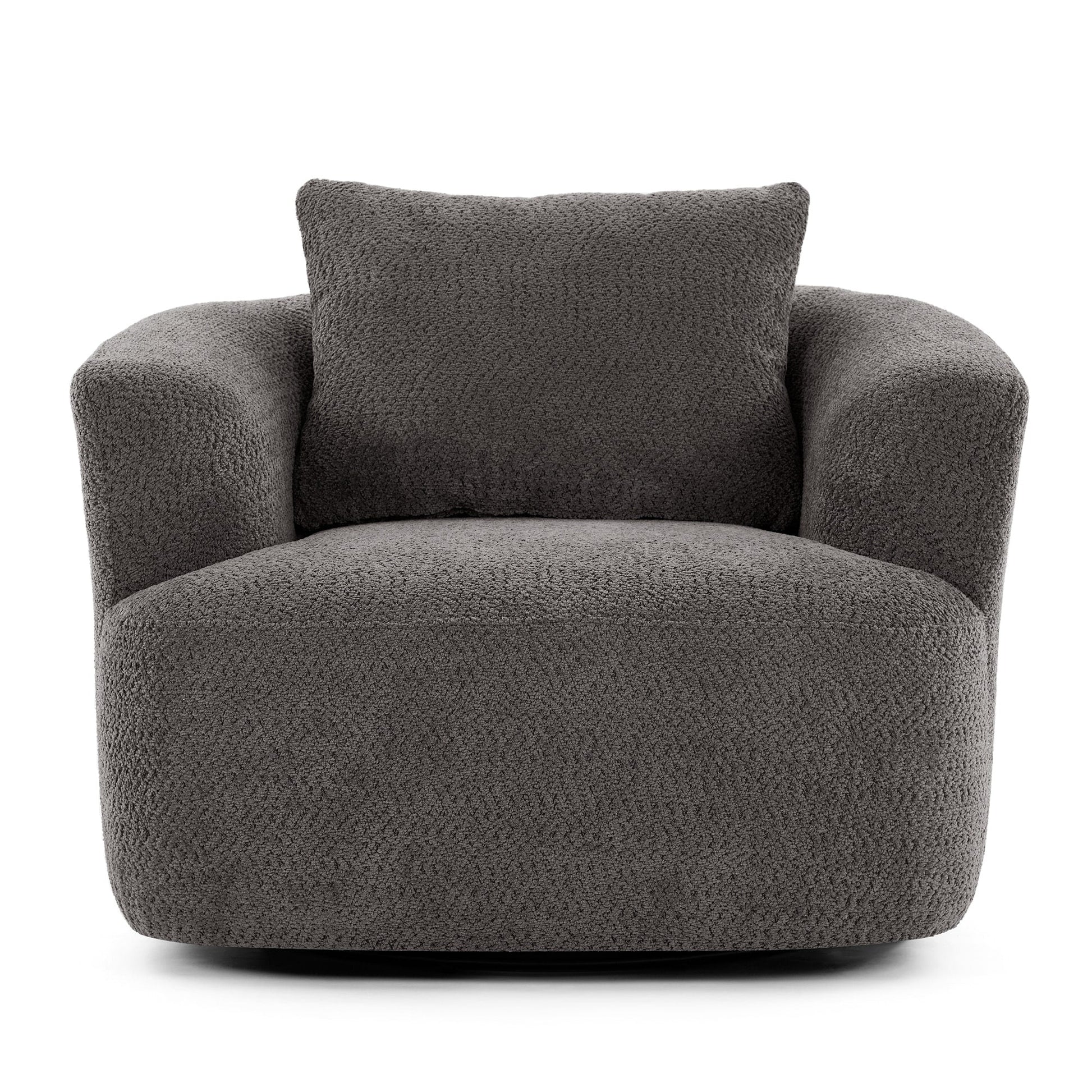 Fauteuil pivotant à 360°, fauteuil d'appoint Boucle 38,2 avec coussin décoratif, fauteuil tonneau rembourré avec accoudoirs incurvés