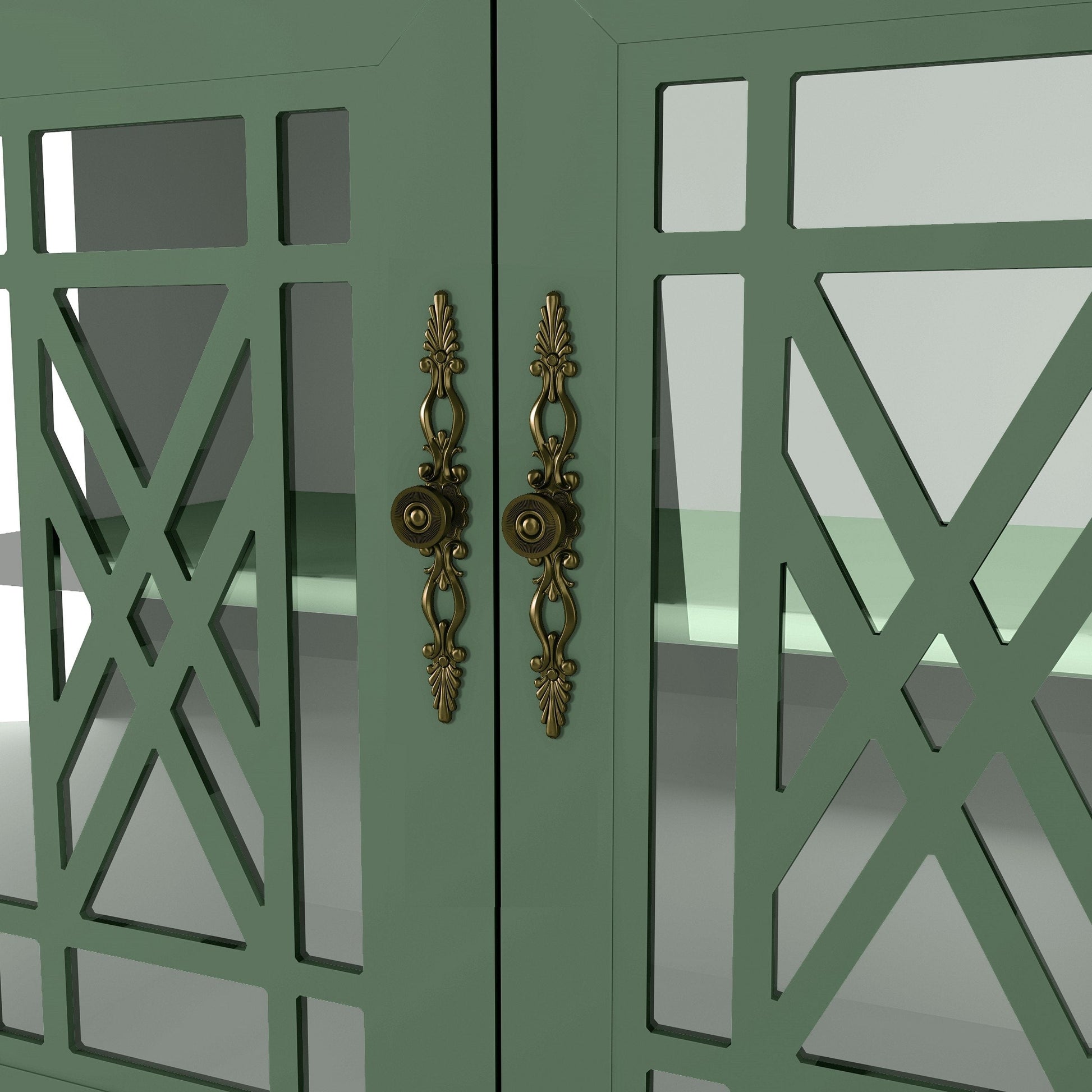 - Quatre portes à panneaux de verre avec une superposition de bois complexe et des poignées en métal de style vintage