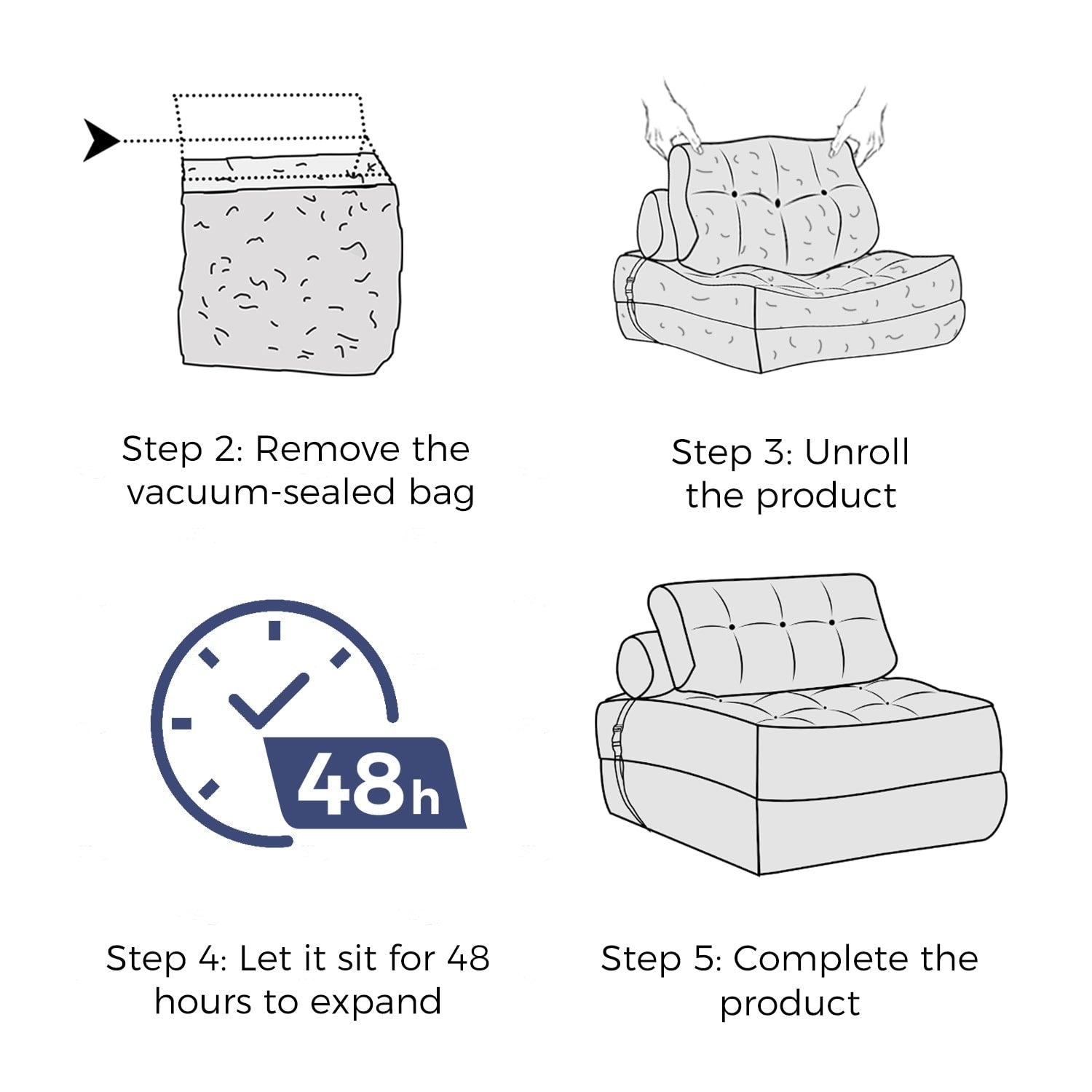 - Expédition et installation pratiques : compressé et scellé sous vide pour une expédition efficace ; prévoyez 48 heures après le déballage pour que le canapé-lit retrouve sa forme d'origine.
