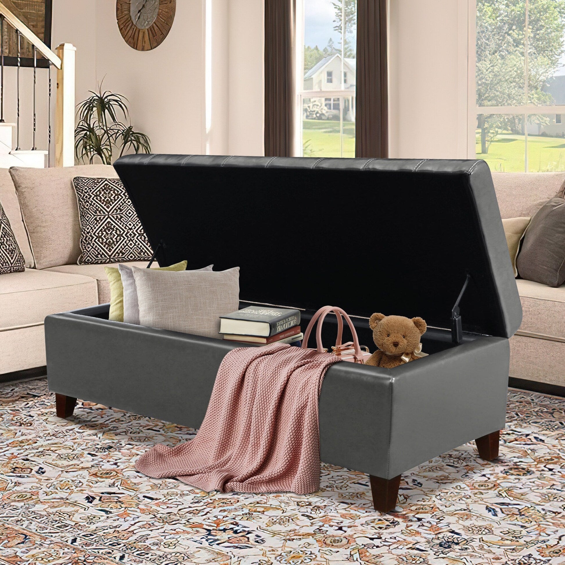 Ajoutez sophistication et rangement à votre espace avec ce banc ottoman de rangement. Cet élégant meuble, disponible en plusieurs coloris, est doté d'un rembourrage capitonné pour une assise confortable et d'un grand espace de rangement intérieur idéal pour les couvertures, les livres ou autres articles ménagers. Son design en relief apporte du caractère à votre chambre ou à votre entrée, tandis que son cuir reconstitué résistant garantit une qualité durable.