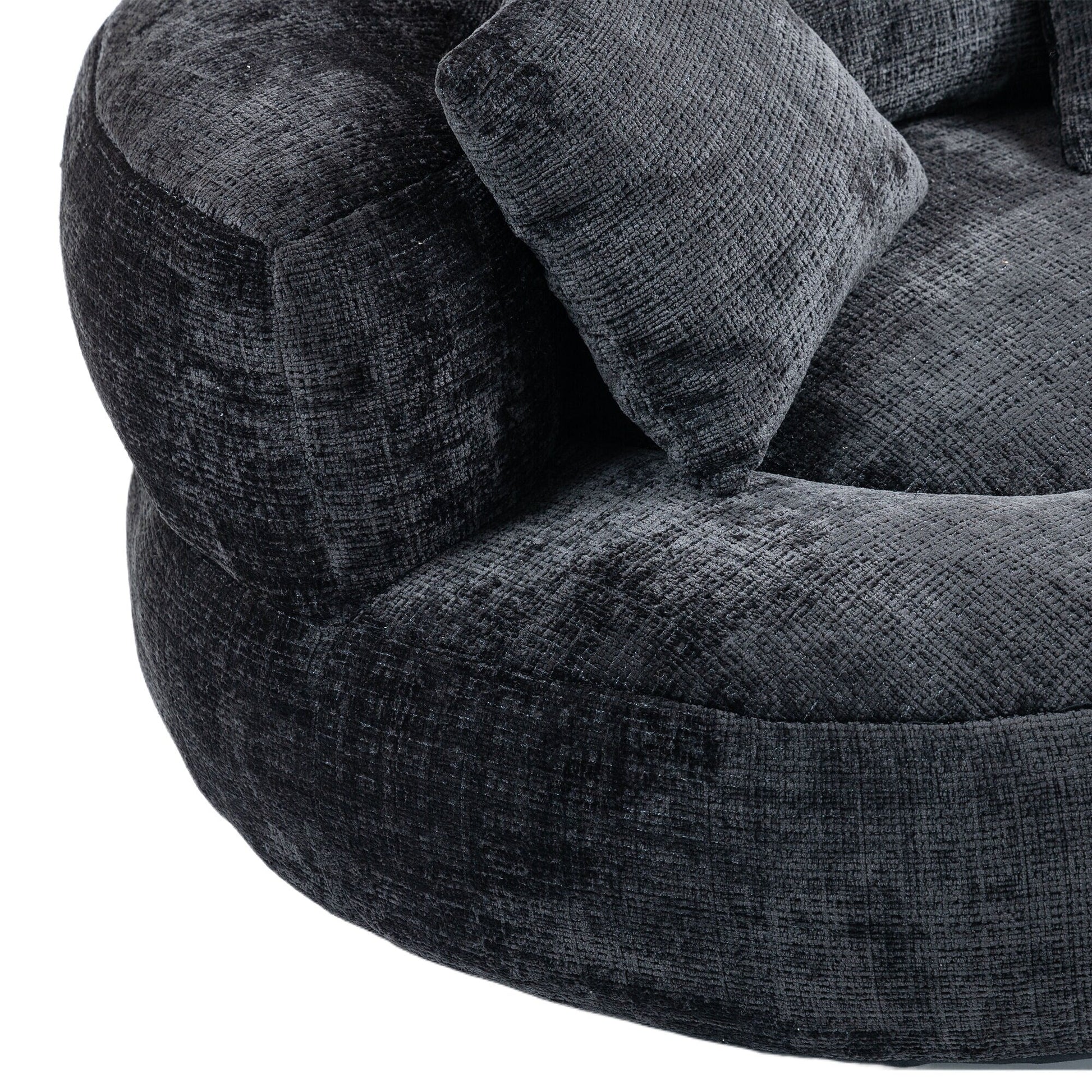 Pouf simple surdimensionné en chenille noir de 42,52 pouces avec trois oreillers pour chambre à coucher