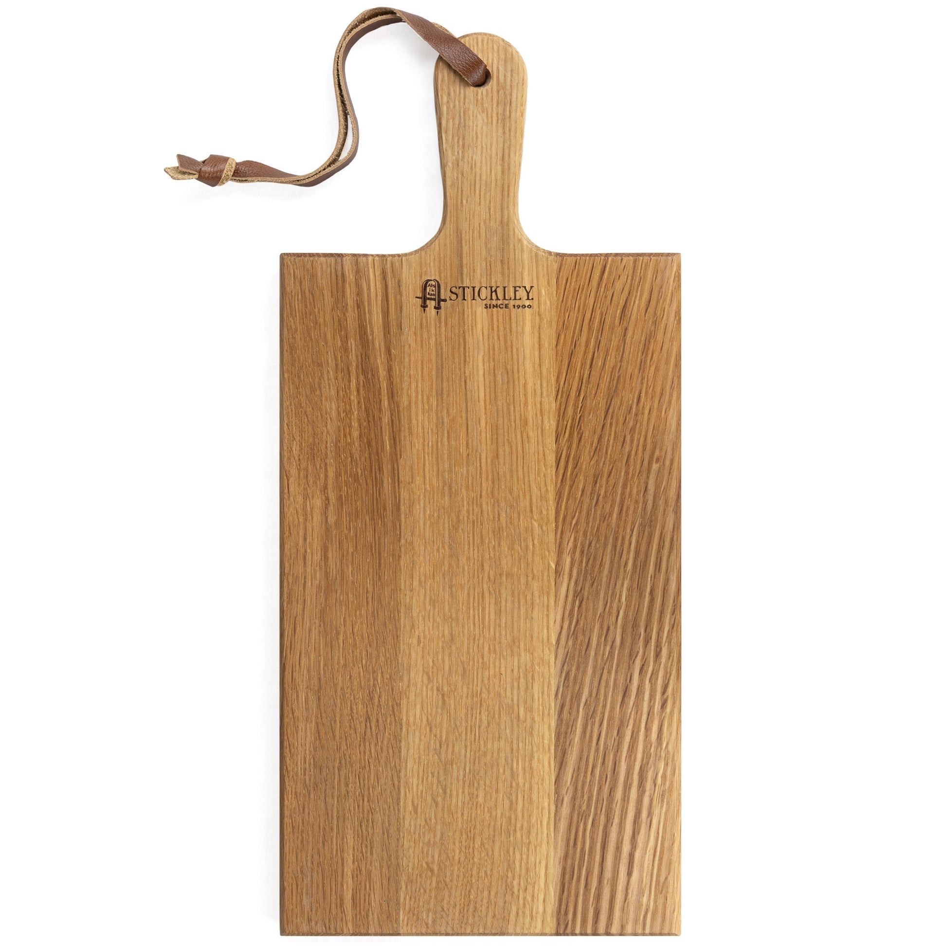 Notre nouvelle planche à pain Stickley, ornée d'un logo gravé, offre une surface durable en chêne massif pour trancher les pains ou servir des amuse-gueules et des hors-d'œuvre. Fabriquée avec un assemblage robuste à rainure et languette, elle bénéficie d'une finition alimentaire approuvée par la FDA. Accrochez-la par sa lanière en cuir pour la ranger ou l'exposer.