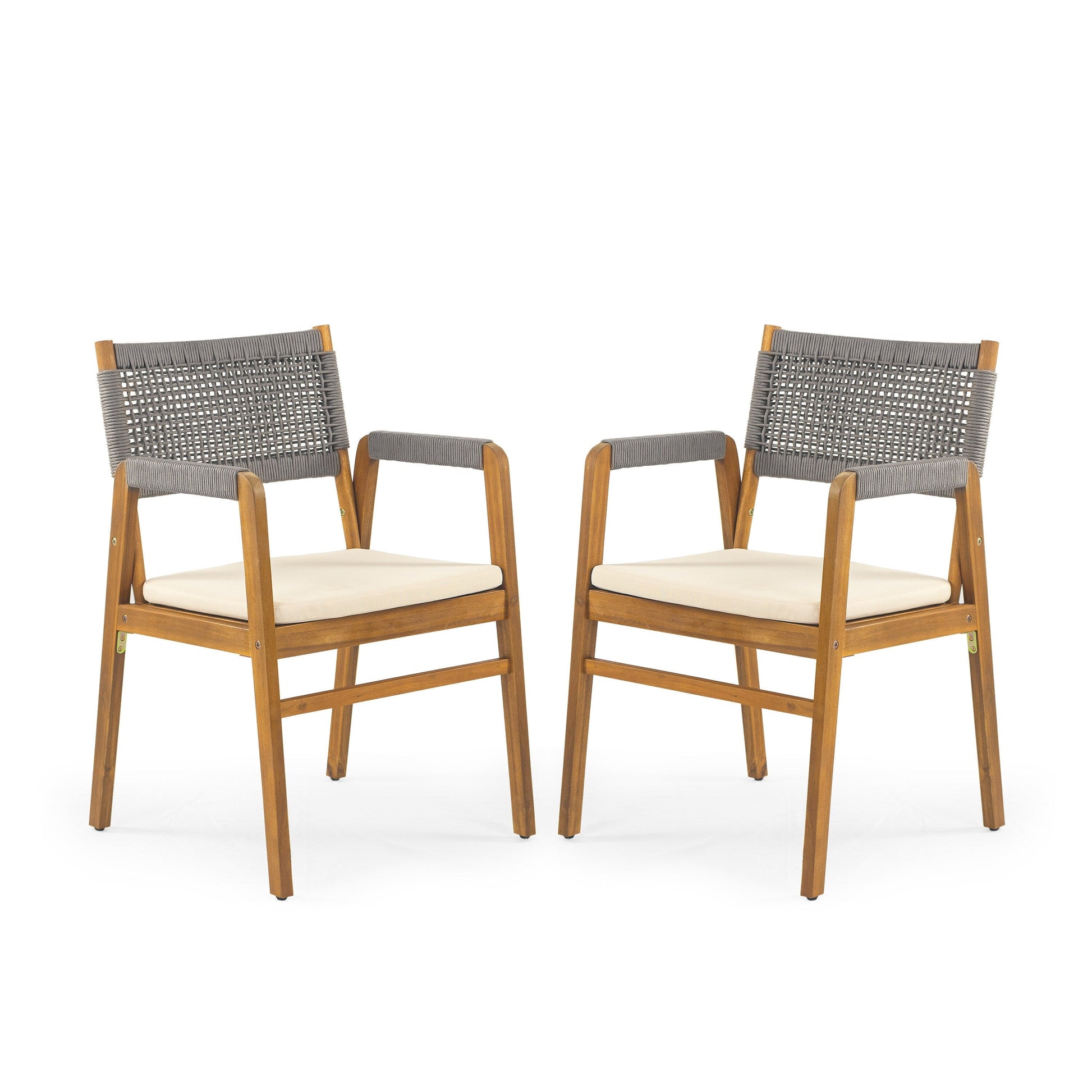 Sublimez votre espace extérieur avec cet élégant ensemble de meubles en bois d'acacia. Il comprend deux chaises aux dossiers confortables en corde tressée et une table bistrot assortie en bois d'acacia à la finition élégante en teck. Sa conception robuste et résistante aux intempéries est idéale pour une utilisation durable. Montage facile grâce aux outils fournis. Dimensions des chaises : 6,5 m (L) x 6,5 m (P) x 9,9 m (H). Dimensions de la table : 9,6 m (L) x 9,6 m (P) x 9,1 m (H).