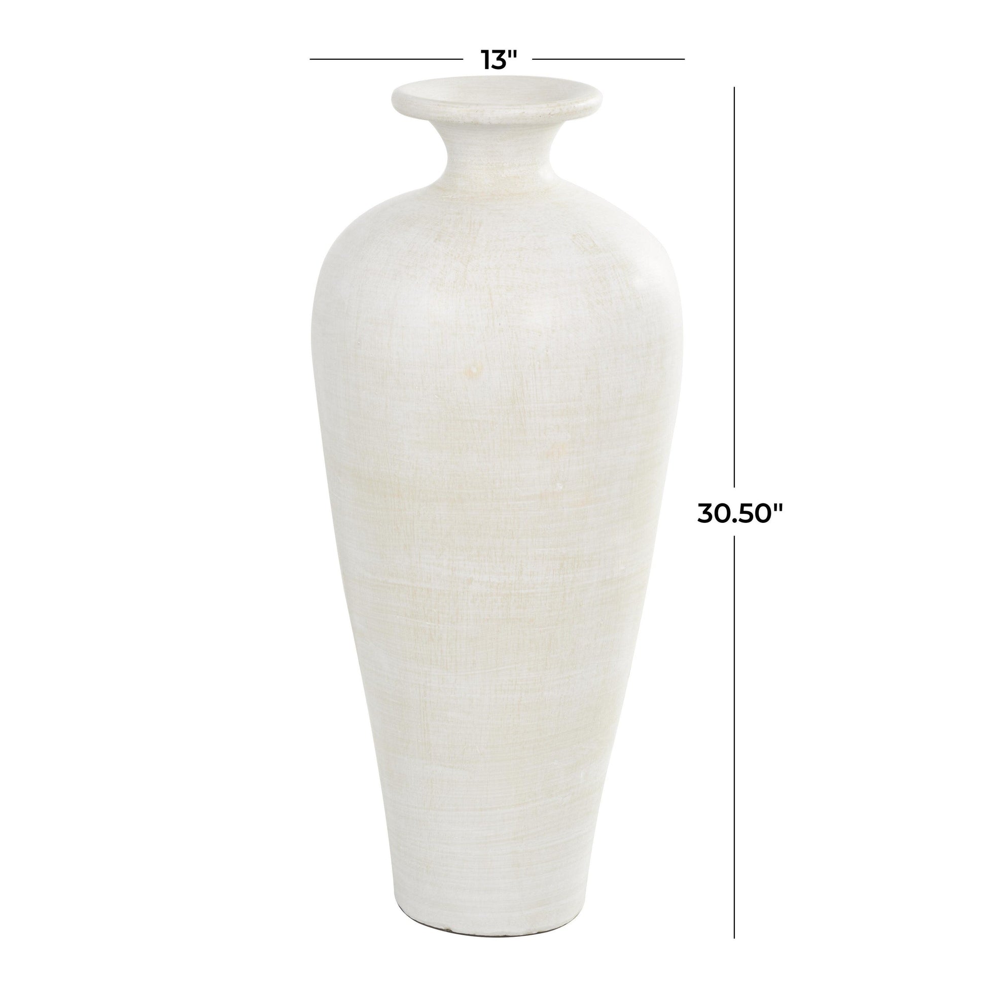 - Le vase en céramique blanche mesure 13L x 13W x 30,50H pouces et pèse 25 lb