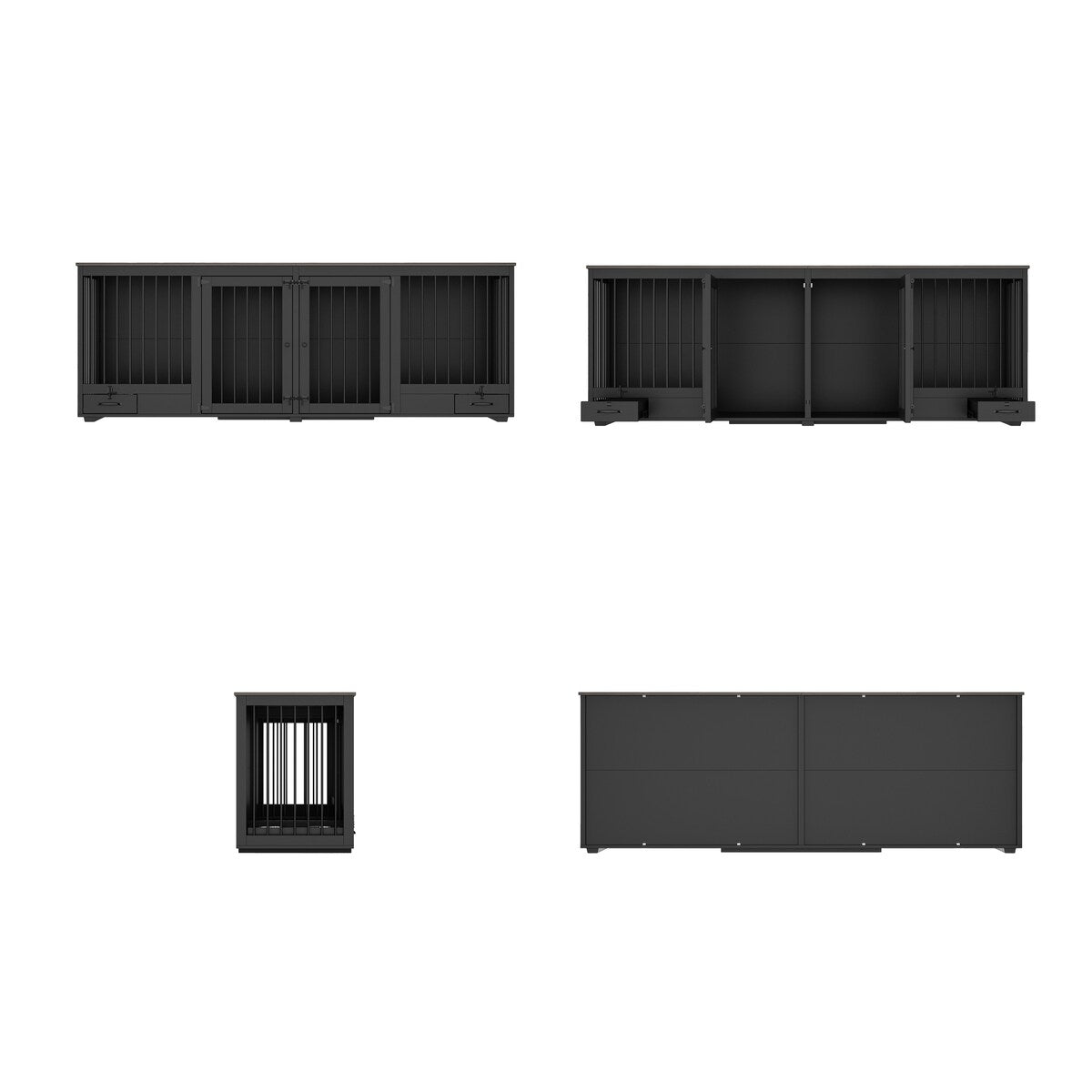 ❤ 【STYLE MODERNE】 Cette cage pour chien de style meuble moderne, mesurant 86,6 x 23,6 x 31,5 pouces, sert plus qu'une simple cage pour les grands chiens - elle peut également être utilisée comme un meuble polyvalent tel qu'un meuble TV, un présentoir, une table d'appoint, un buffet, etc. Avec son mélange élégant de couleurs noires, il complète sans effort divers styles de décoration intérieure, ajoutant une touche de simplicité et de mode à n'importe quel espace.