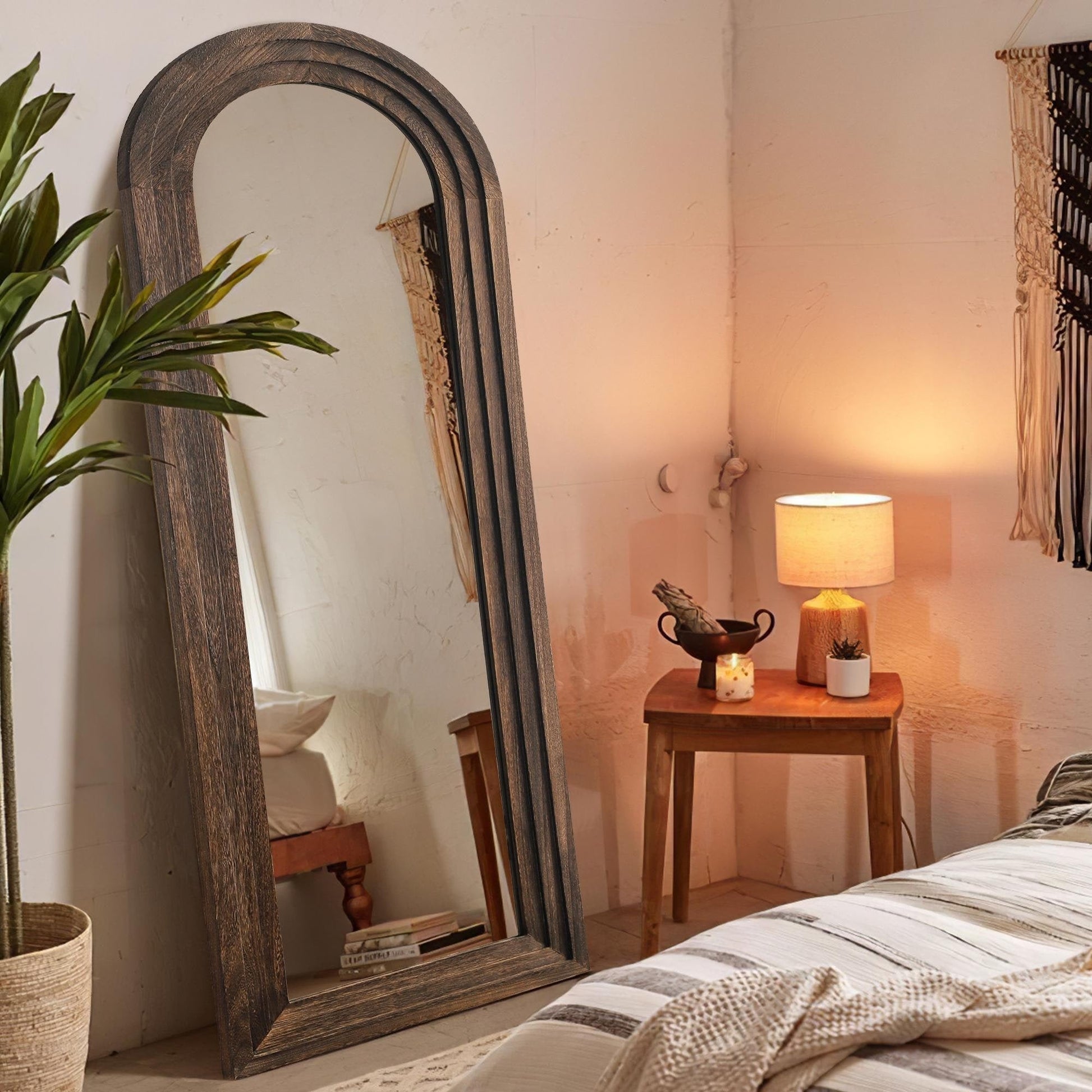 Miroir rustique en bois vieilli Dovelina, miroir de sol pleine longueur