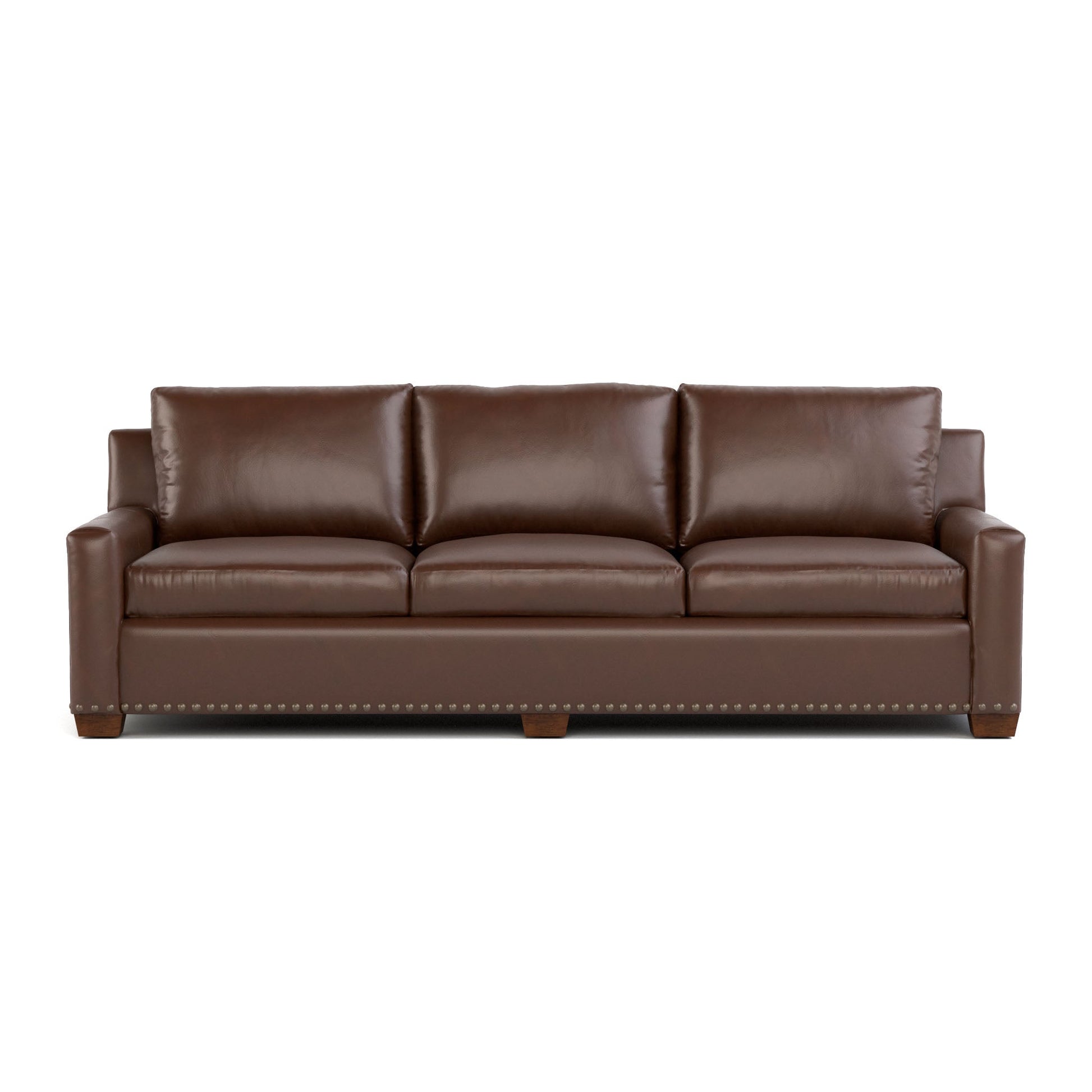 La collection Durant privilégie un confort généreux et spacieux. Son canapé familial de 255 cm est le plus profond de notre gamme (107 cm). Il est doté de trois larges assises avec des coussins moelleux et des accoudoirs bien rembourrés, ainsi que de coussins décoratifs sur la version en tissu. Ses proportions généreuses en font le canapé idéal pour regarder un film, lire un livre aux enfants ou faire une sieste relaxante. Les finitions de Durant sont tout aussi impressionnantes : la version en cuir présente un luxueux pli à poche sur chaque accoudoir, et le bord inférieur est orné d'une rangée soignée de grands clous décoratifs (en option).