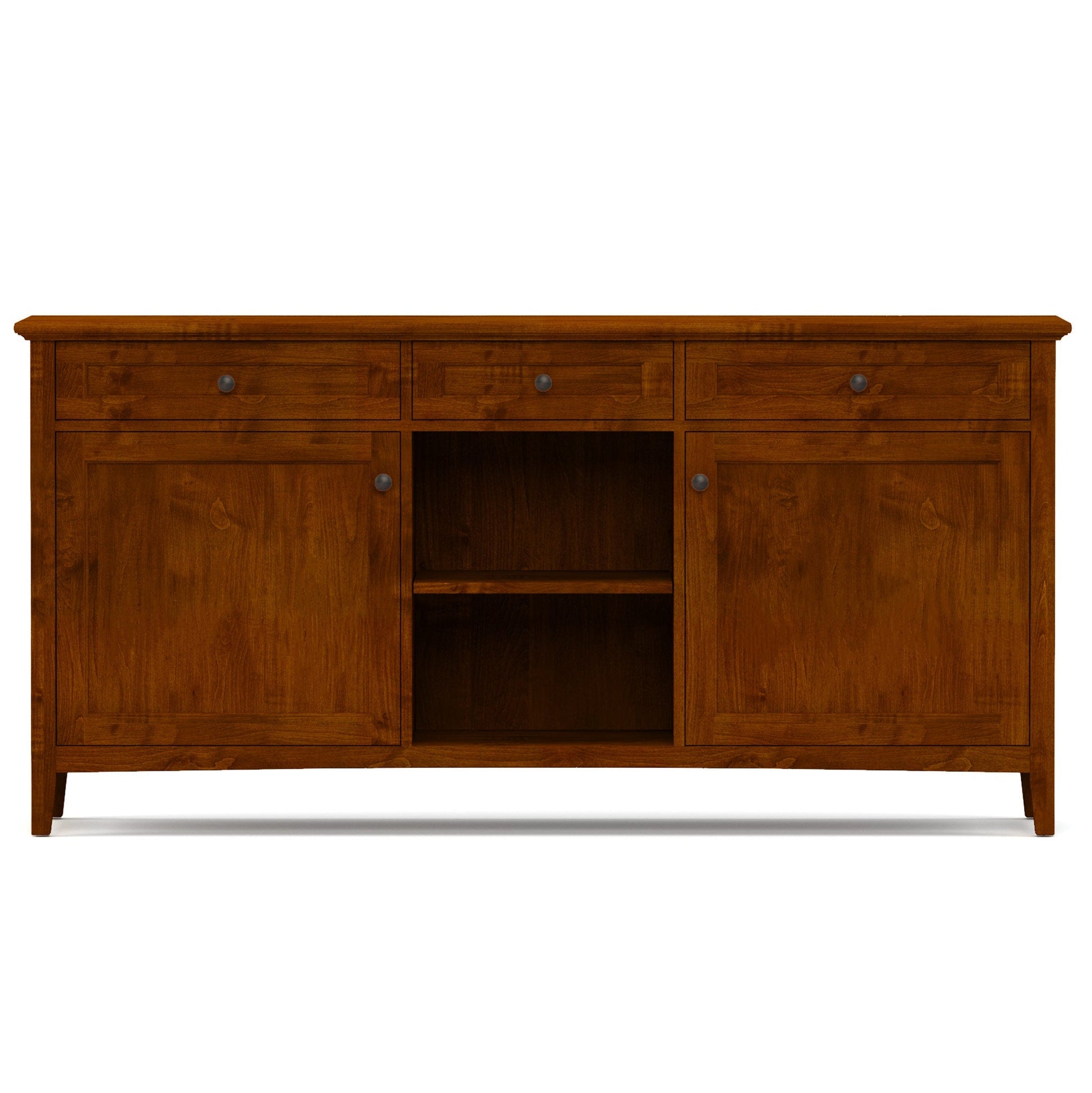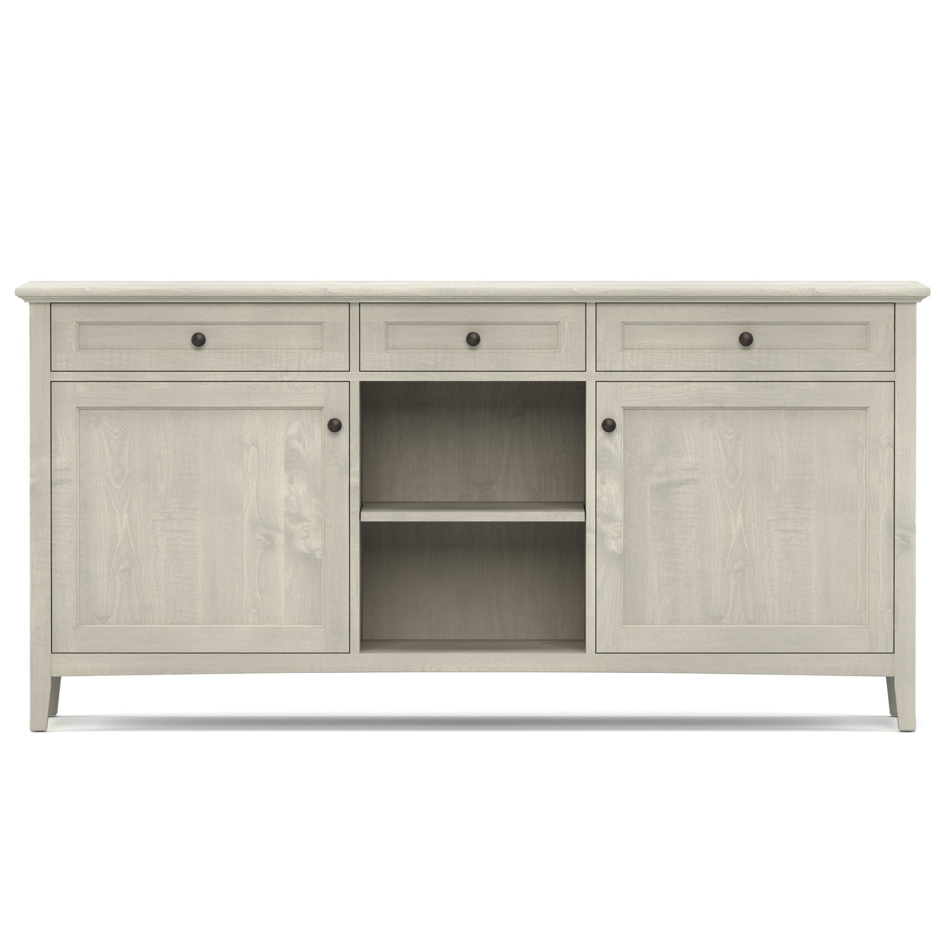Les élégants buffets Dwyer présentent de larges surfaces continues qui mettent en valeur votre choix de finitions raffinées. Le panneau sous le plateau, signature de Dwyer, apporte une touche décorative unique, agrémenté de votre quincaillerie Origins by Stickley préférée. Dans ce grand buffet, trois tiroirs à fermeture douce offrent un espace de rangement pour les ustensiles ou le linge. Une étagère réglable se trouve derrière chaque porte et une dans l'espace ouvert entre elles.