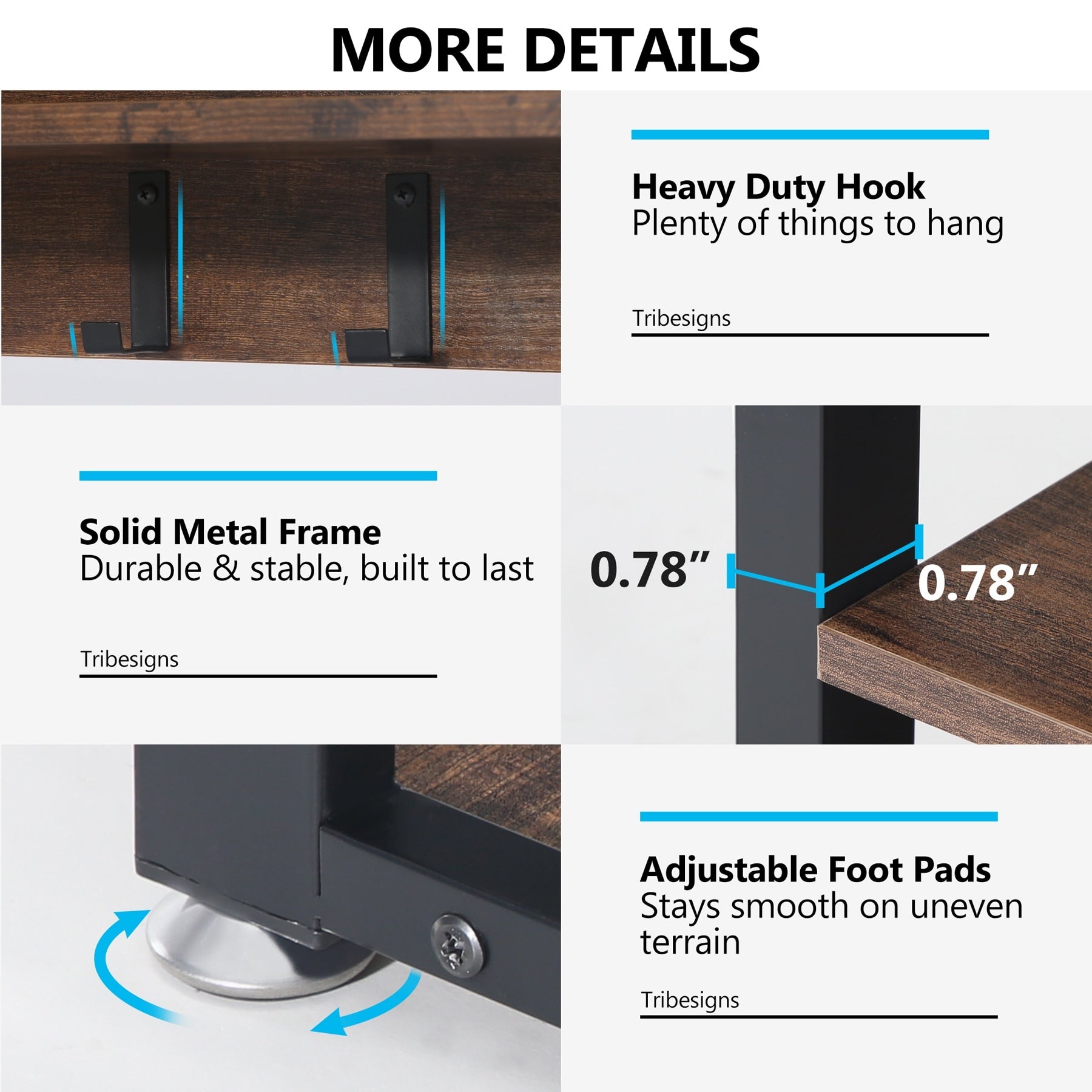 Organisez votre entrée avec style grâce à ce charmant porte-manteaux et chaussures de style industriel. Avec son allure sophistiquée et rustique, il s'harmonise parfaitement avec les autres meubles de votre maison et apporte une touche vintage à votre espace. Ce porte-manteaux multifonctionnel avec banc est non seulement un porte-manteaux, mais aussi un banc à chaussures et un meuble de rangement, idéal pour les entrées, les couloirs, les halls d'entrée, les chambres et les salons.