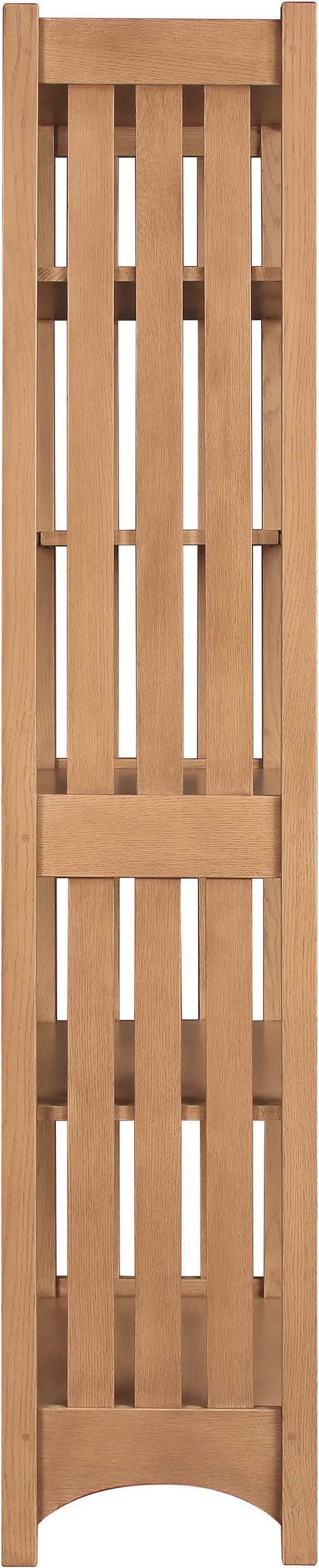 Lumineuse et aérée, cette étagère offre plus de trois mètres de surface d'exposition. Elle est dotée de deux tablettes réglables au-dessus du tiroir et d'une tablette réglable en dessous. Fabriquée en chêne blanc scié sur quartier.