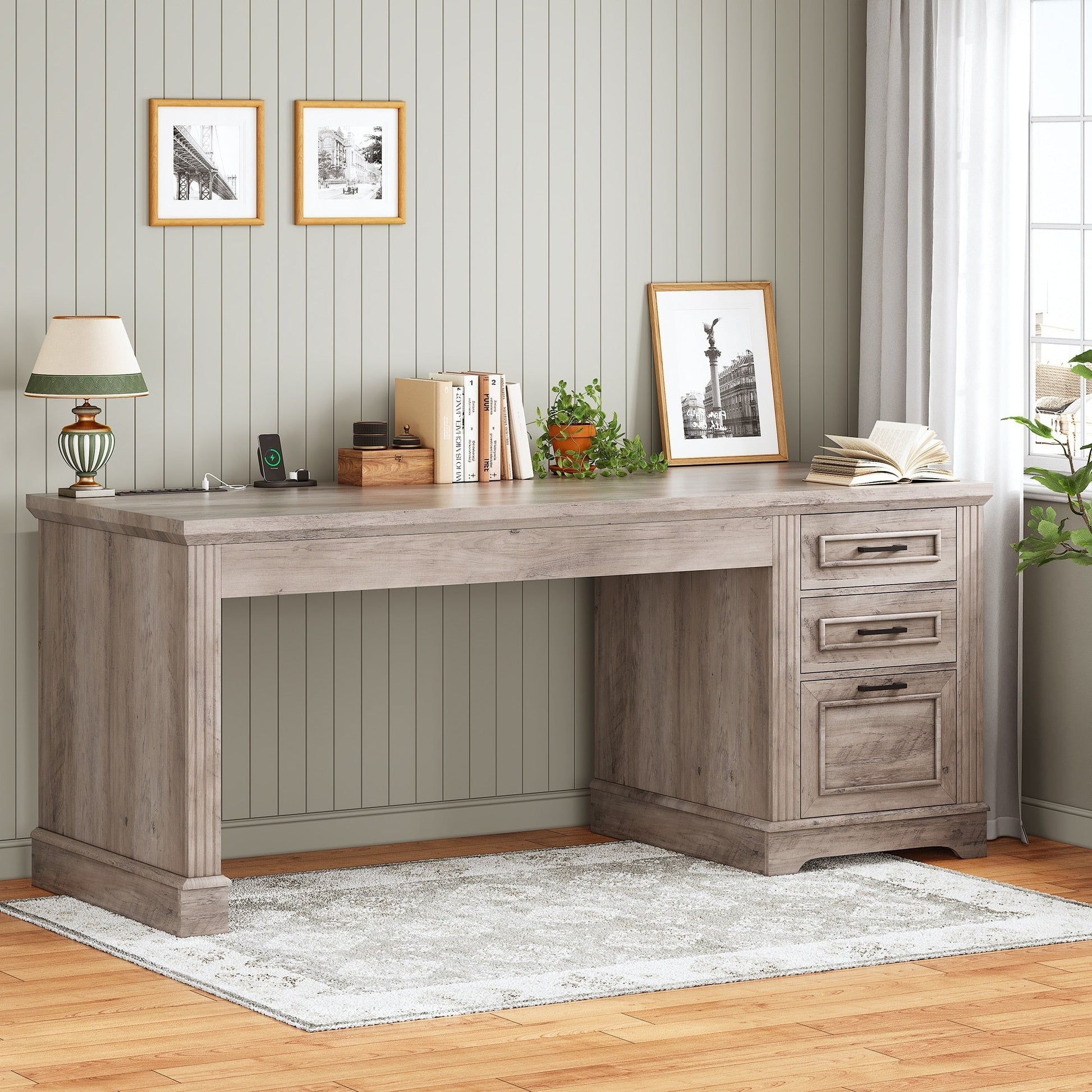 Bureau d'ordinateur avec tiroirs, bureau de ferme avec tiroirs de rangement, bureau de direction avec prise de courant pour le bureau à domicile