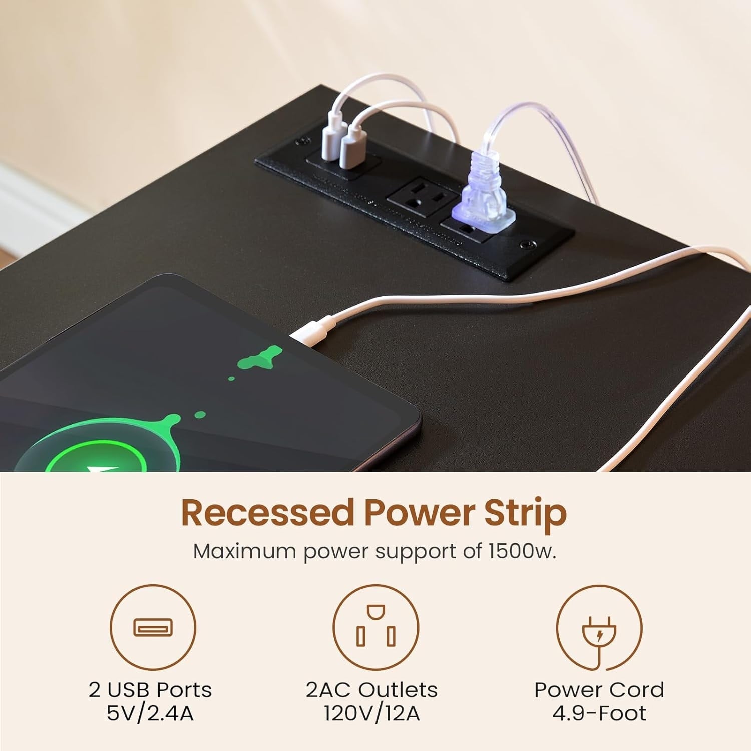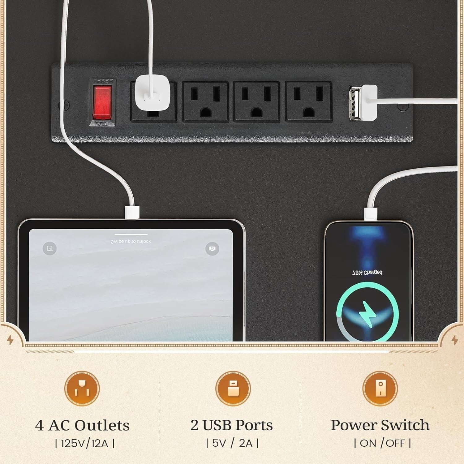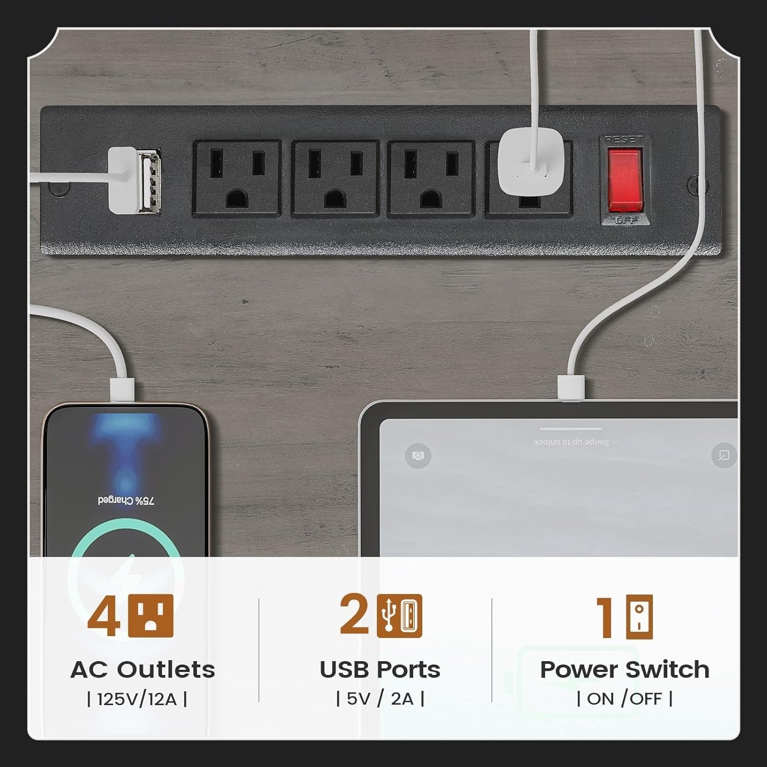 - Prises de courant : ce bureau d'ordinateur est équipé de 4 prises secteur et de 2 ports USB pour recharger facilement votre matériel de jeu, votre tablette, votre imprimante ou votre téléphone. L'interrupteur permet de couper l'alimentation facilement et en toute sécurité, sans avoir à débrancher les appareils.