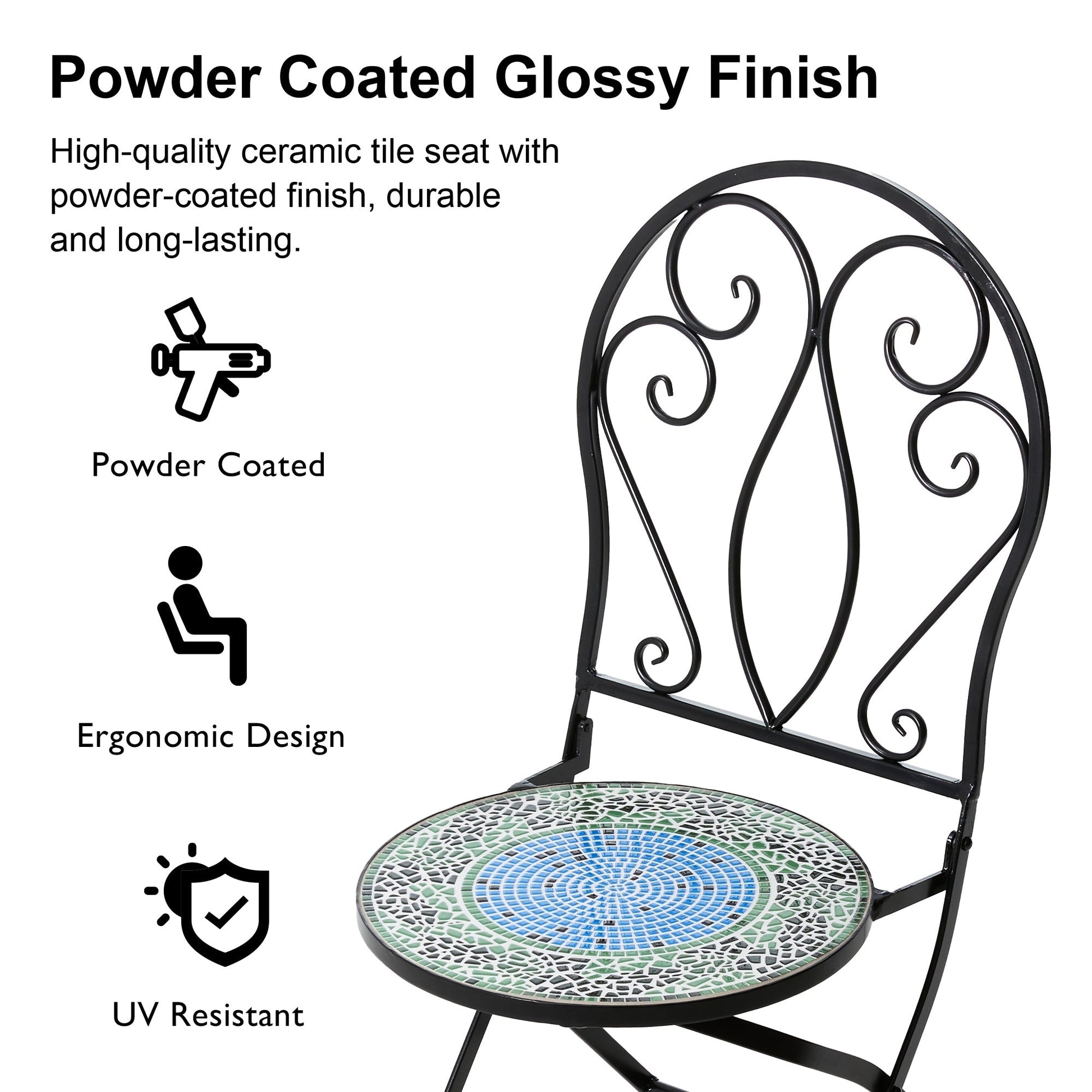 Ensemble de bistrot pliant d'extérieur en métal Glitzhome 3 pièces avec table et chaises