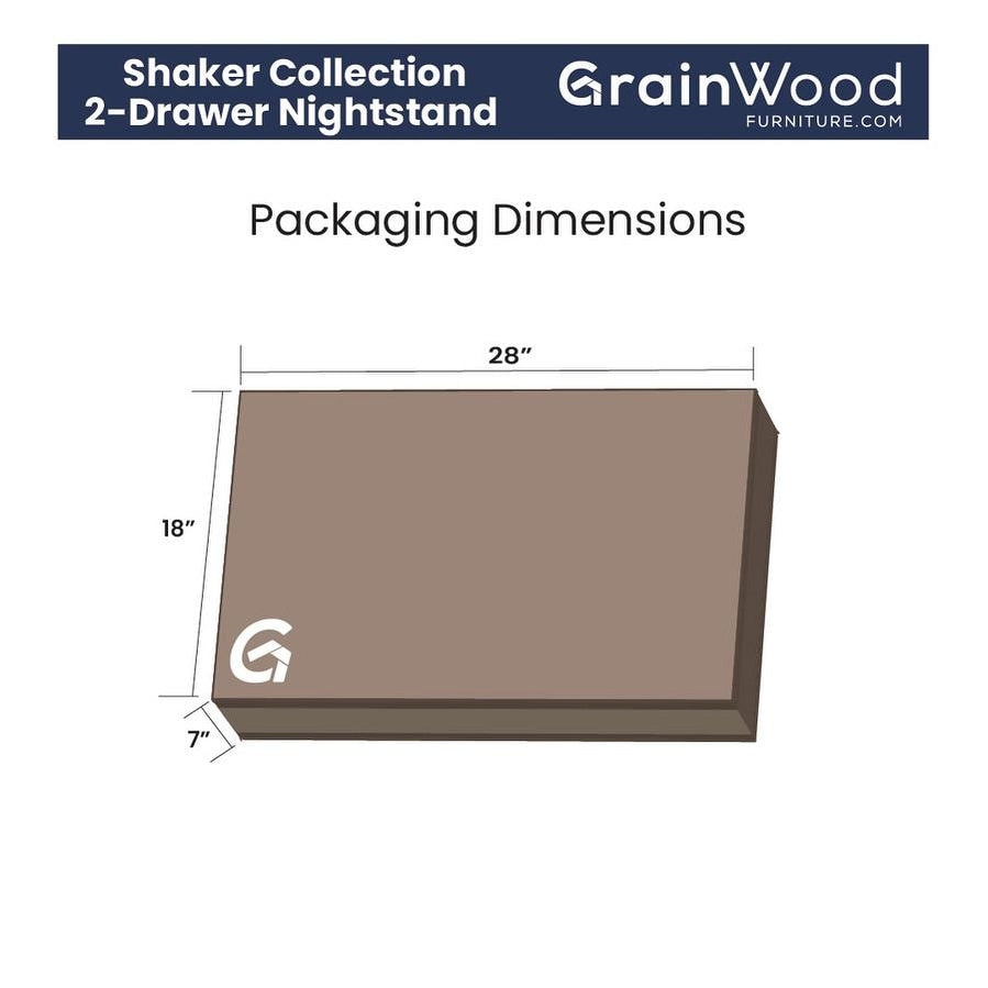 Table de chevet en bois massif à 2 tiroirs de style Shaker en bois de grain