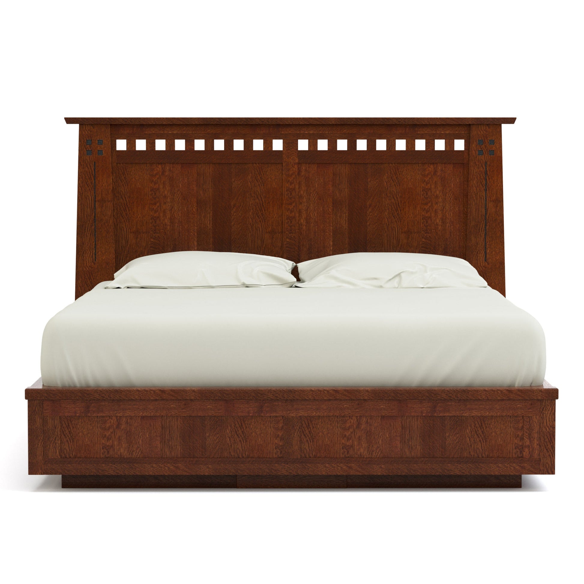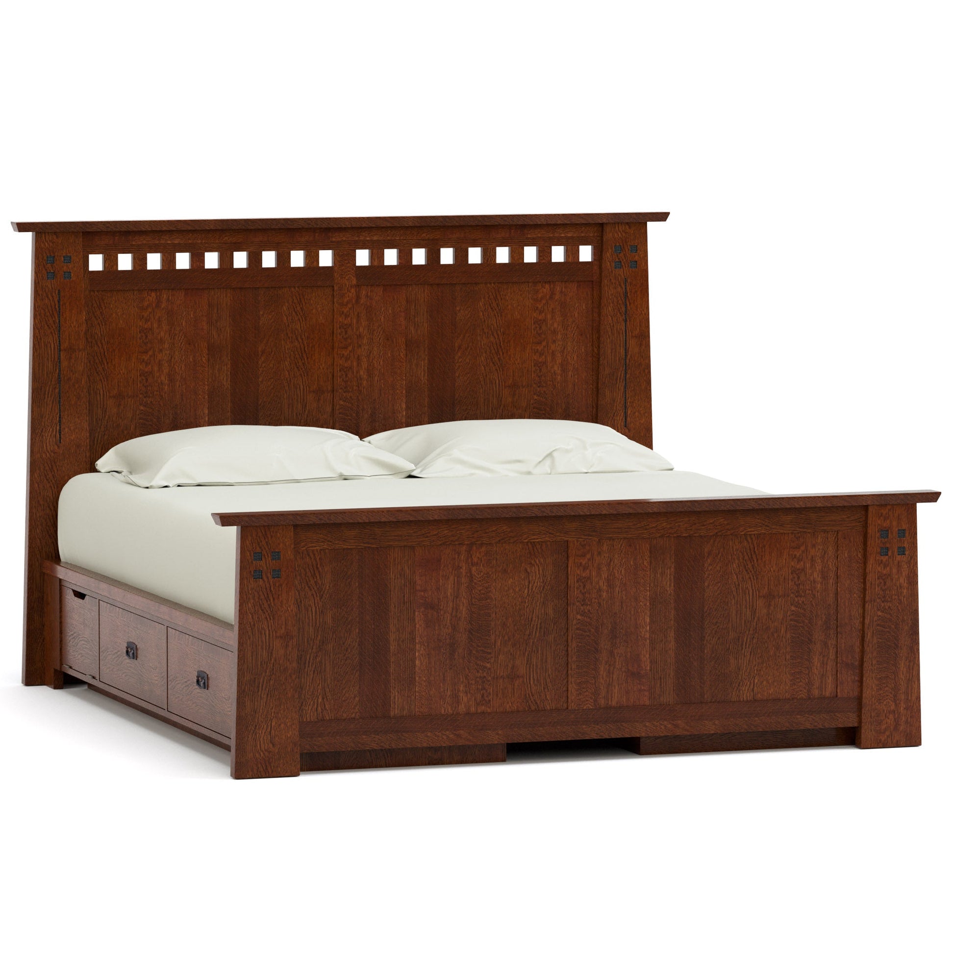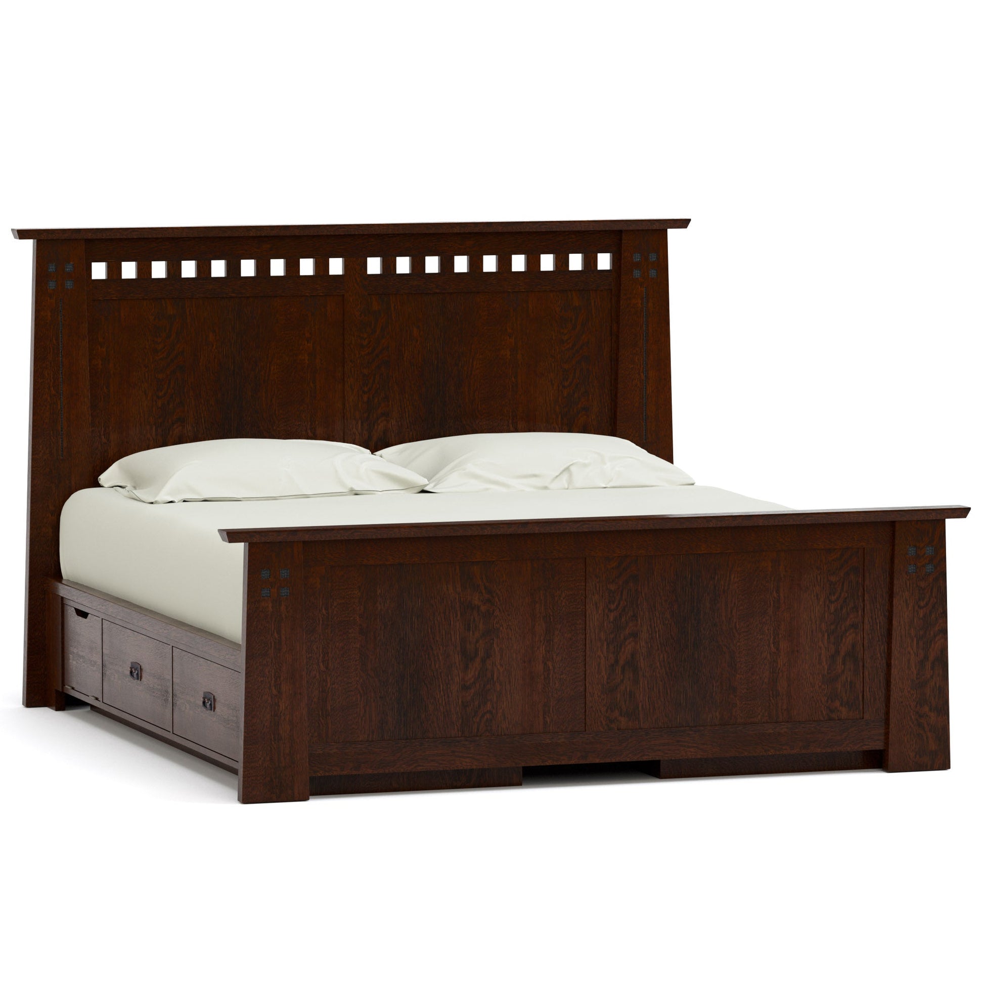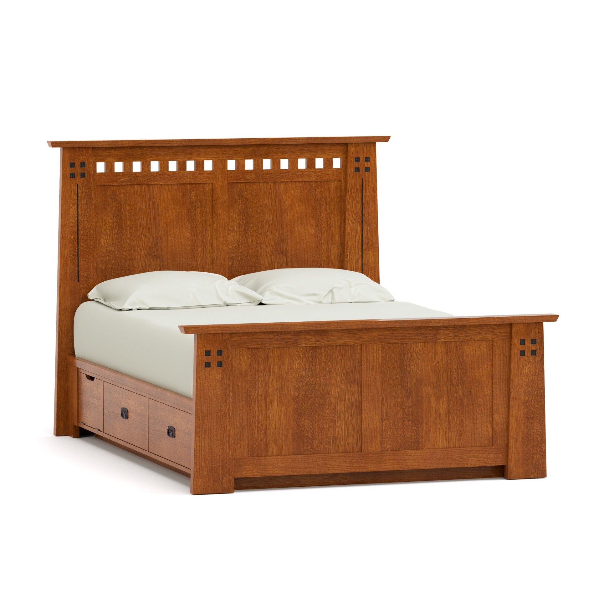 Le lit Highlands est une pièce maîtresse élégante de la chambre, avec ses traverses de lit en saillie façon prairie, son motif décoratif gravé au laser et ses carrés ajourés sur la tête de lit. Cette version avec rangement comprend deux tiroirs à extension complète et un compartiment de rangement de chaque côté. D'autres finitions sont disponibles en livraison express.