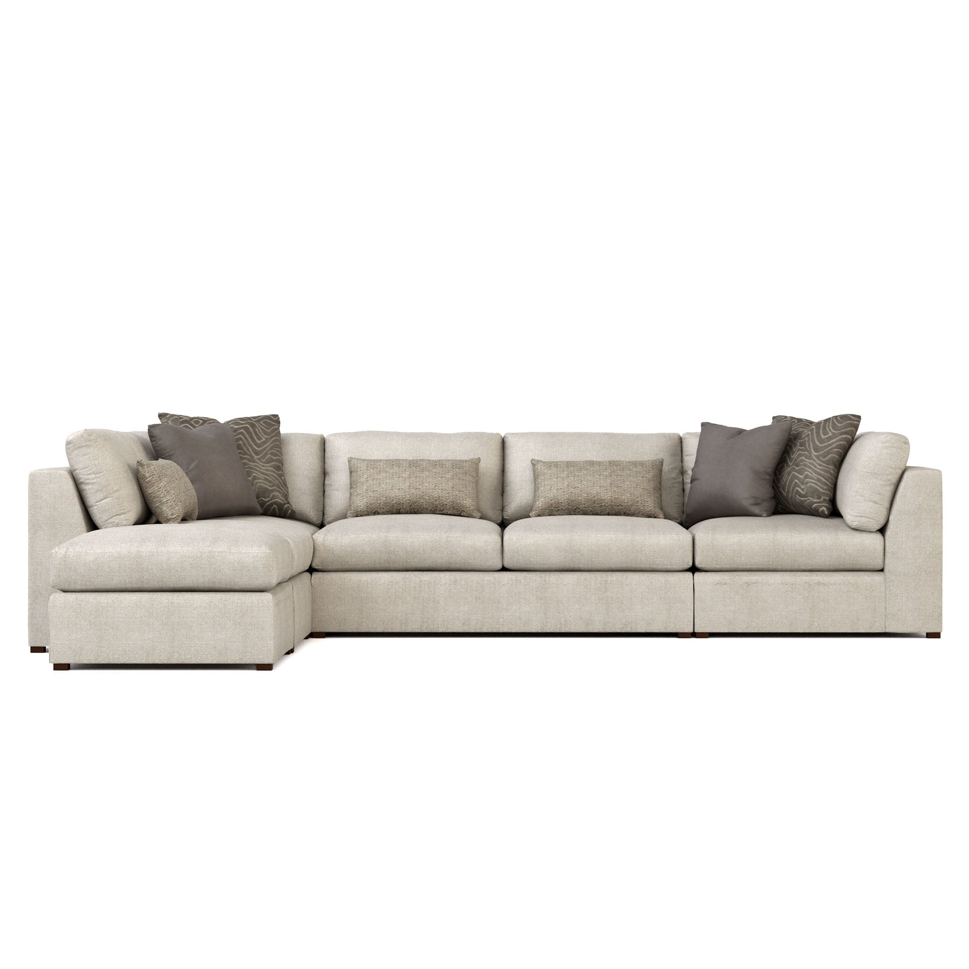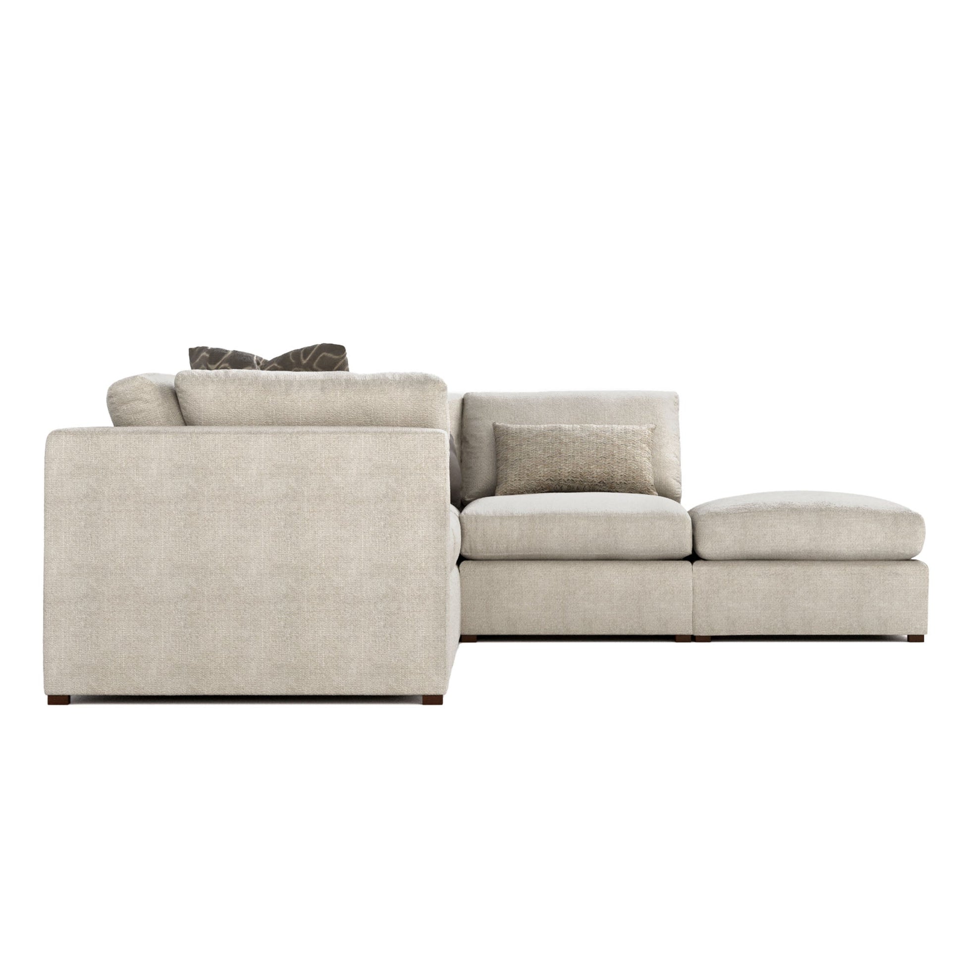 Le canapé d'angle modulaire Holland offre une polyvalence exceptionnelle grâce à ses six éléments modulables selon vos besoins et son style épuré qui s'harmonise avec une grande variété de styles de décoration. Ses coussins d'assise et de dossier moelleux, ainsi que notre système de ressorts DuraCoil moderne, garantissent un confort durable. Ce canapé d'angle combine deux coins carrés avec une causeuse sans accoudoirs, un fauteuil sans accoudoirs et un pouf pour créer un espace spacieux pour la famille et les amis. Il est également fourni avec quatre coussins décoratifs et trois coussins lombaires pour la version en tissu. Vous pouvez acheter le canapé d'angle tel qu'illustré ici ou créer votre propre configuration, dans les tissus ou cuirs Stickley de votre choix, dans votre showroom le plus proche.