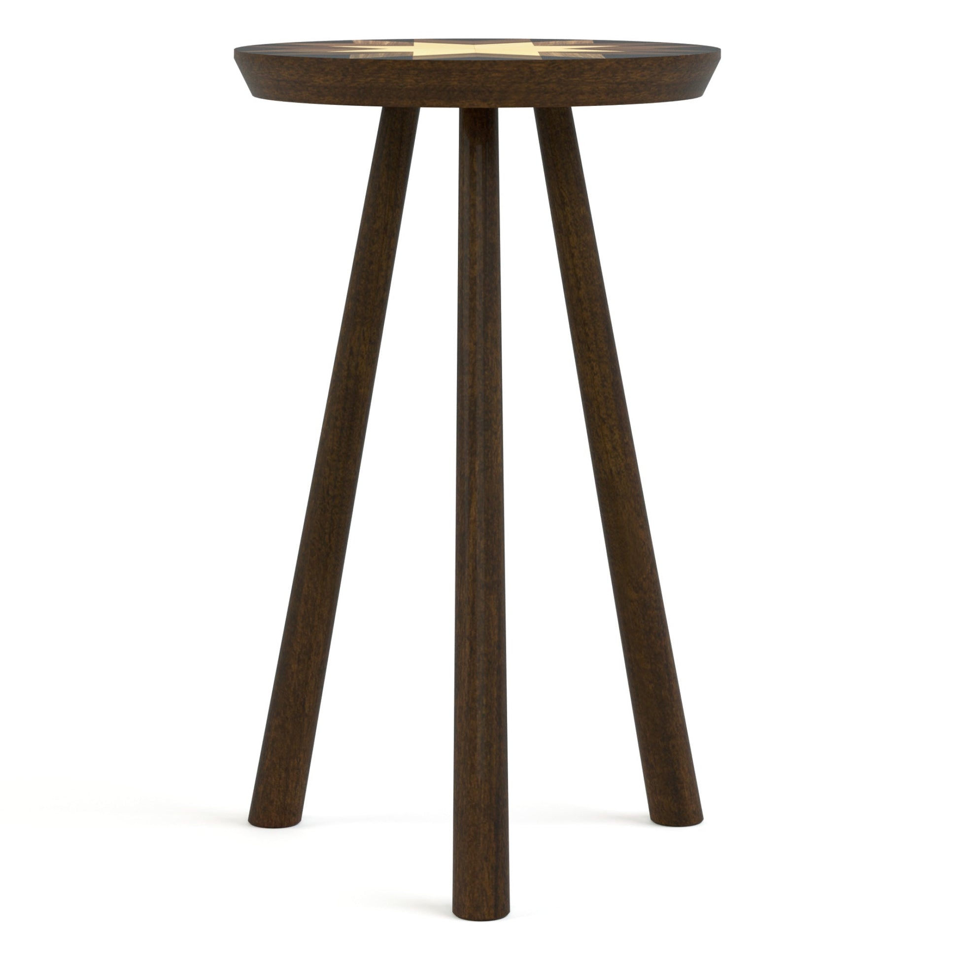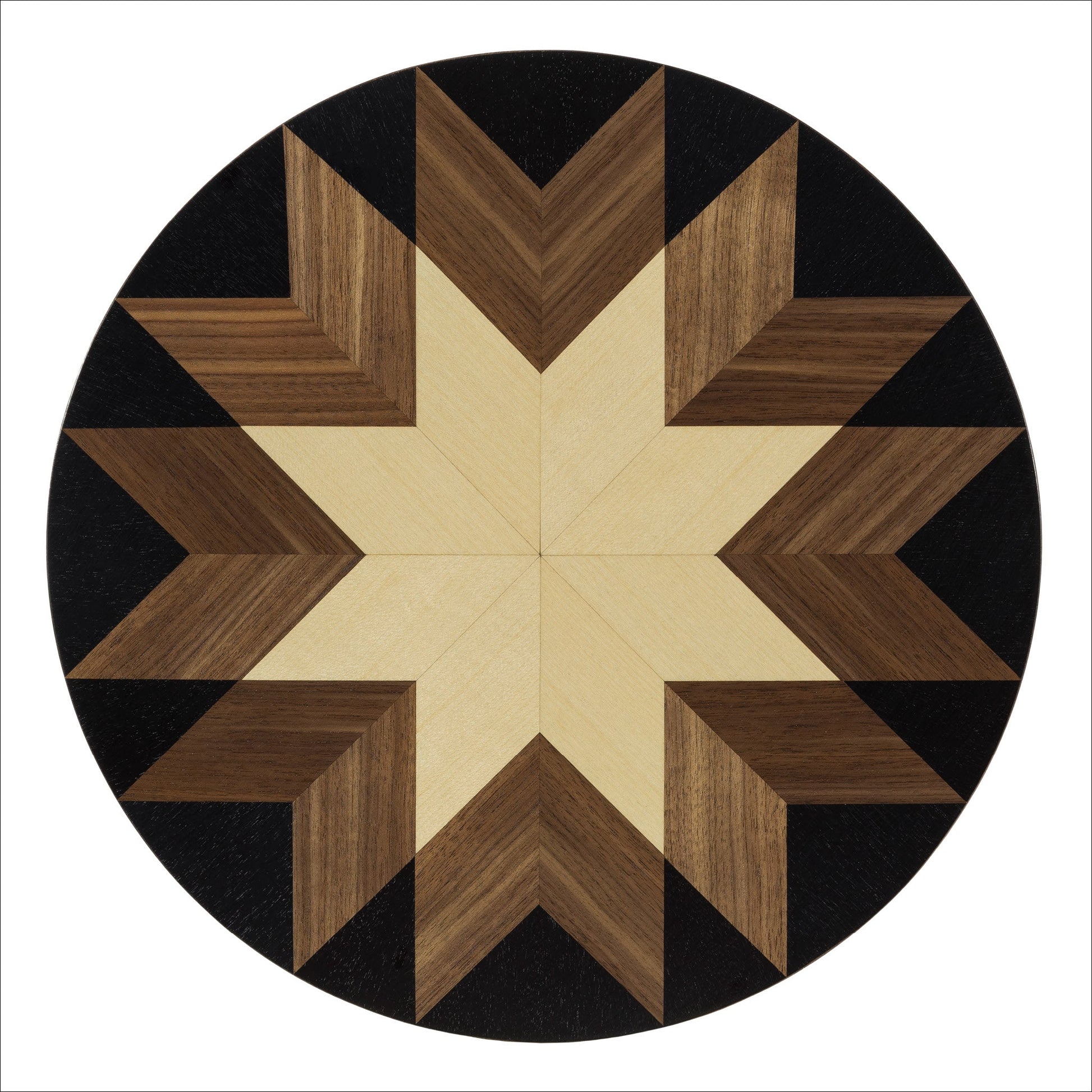 Disponibles en hauteurs de 50 et 55 cm, chacune des tables basses Hudson Valley arbore sa propre version du motif marqueté inspiré du patchwork de la collection, délicatement réalisé en placages de noyer, d'érable naturel et de noir. Les plateaux ronds et les pieds tripodes, subtilement fuselés, sont en noyer noir américain massif, avec une riche finition Dark Roast.