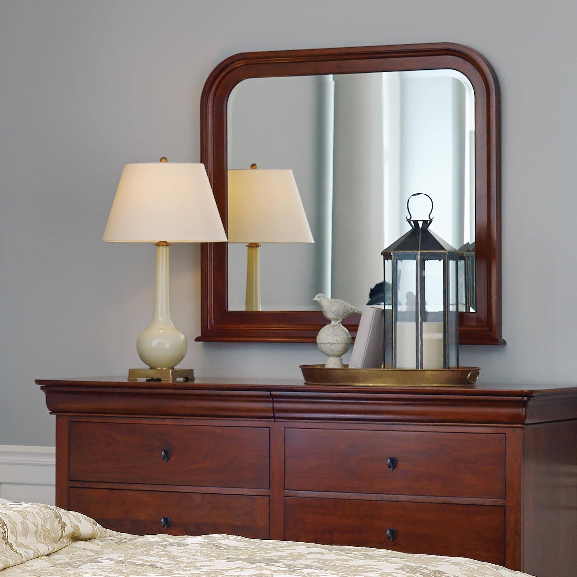Cet élégant miroir en verre biseauté, doté d'un cadre moulé et d'angles supérieurs arrondis, s'harmonise parfaitement avec la commode Marseilles. Fabriqué en merisier massif.