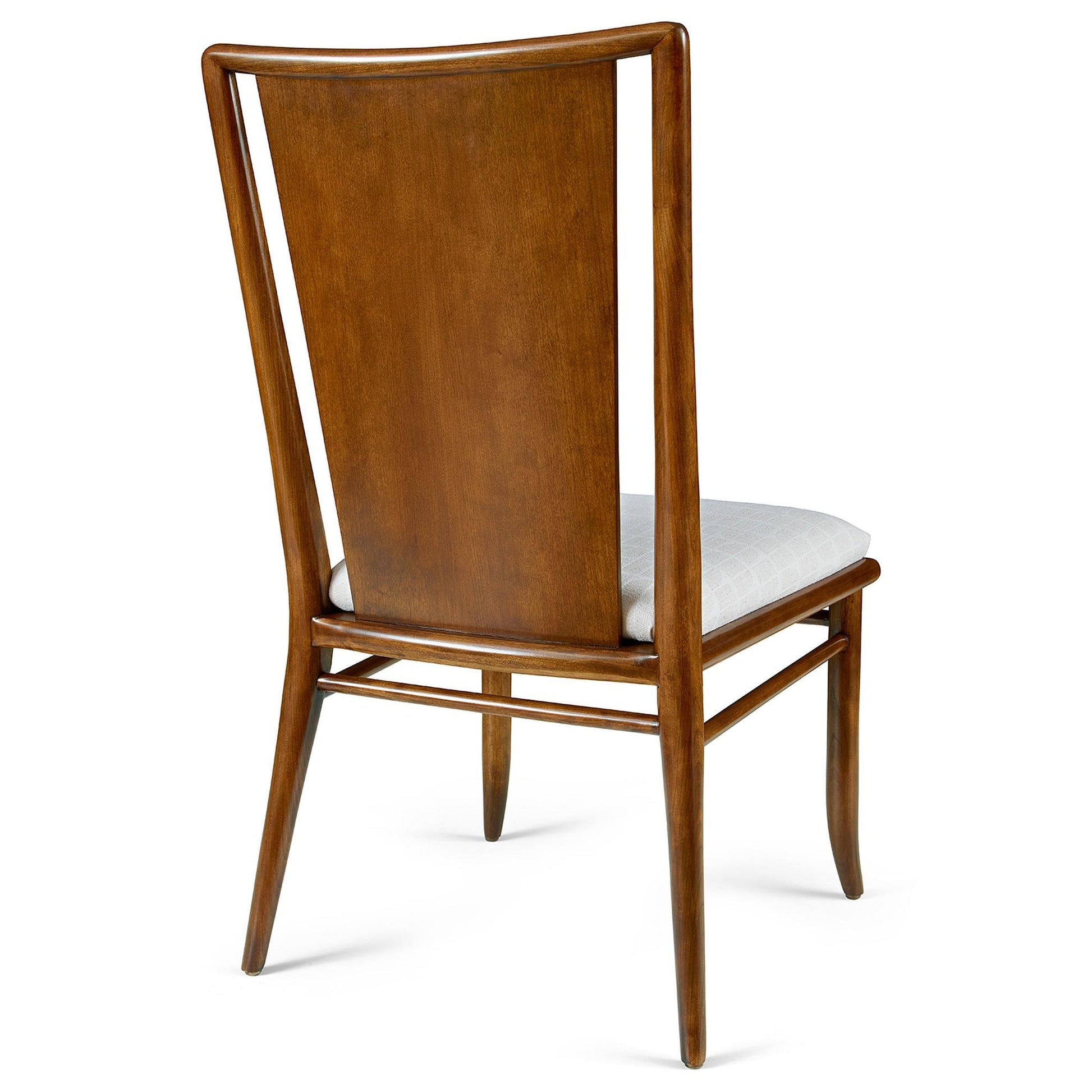 Conçue dans un esprit de confort décontracté et d'inspiration milieu de siècle, la chaise Martine présente des pieds légèrement incurvés et arrondis, ainsi qu'un dossier relevé, où un large panneau central en bois se détache de la structure. Des entretoises sur les quatre côtés se trouvent juste sous l'assise rembourrée. Disponible en tissu ou en cuir au choix.