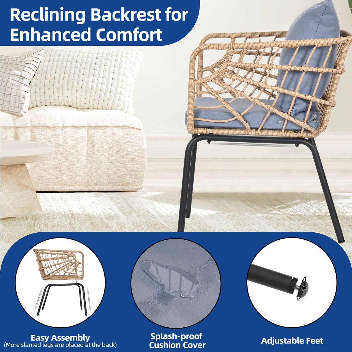 Ensemble de bistrot d'extérieur en osier Moasis 3 pièces avec 2 chaises et table basse