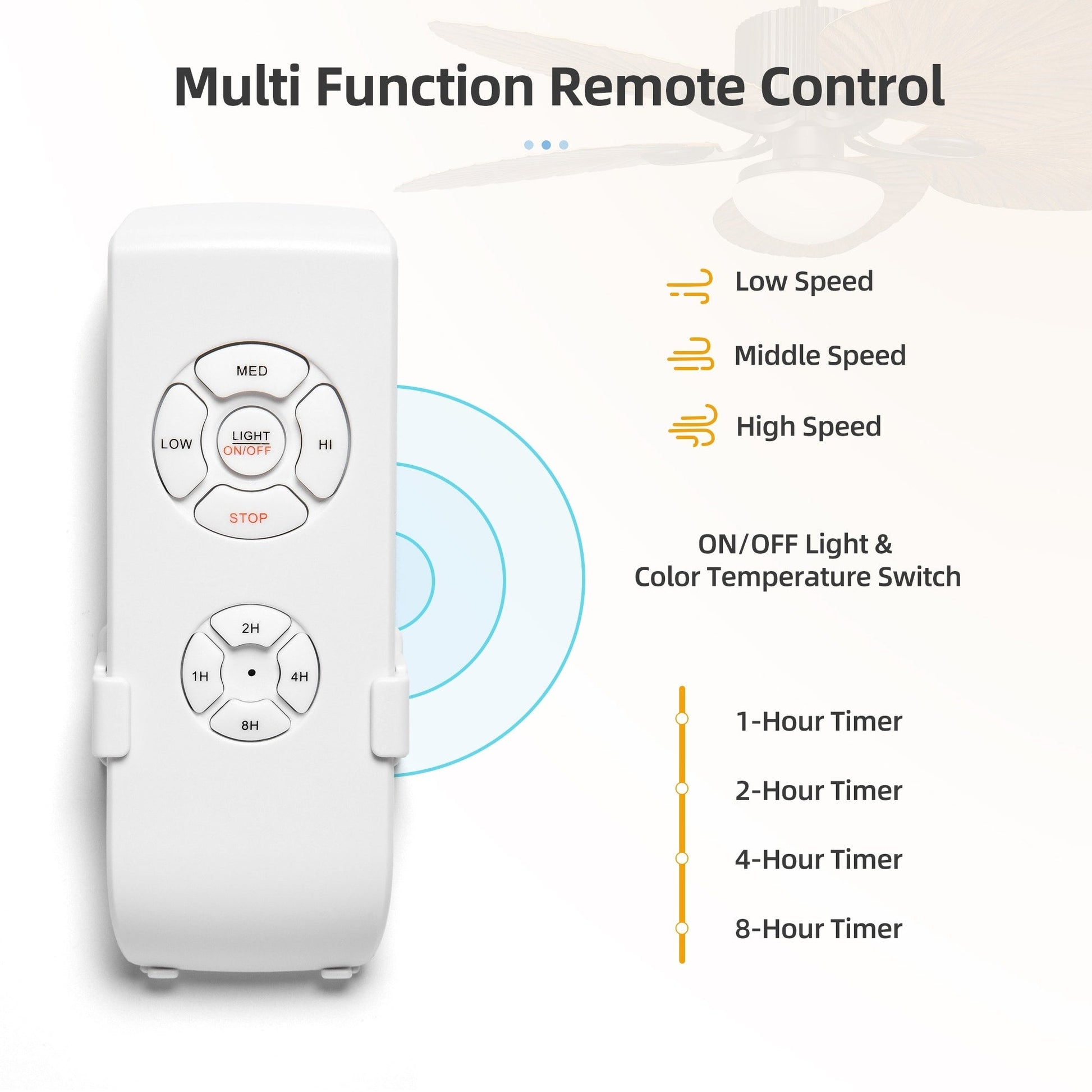 Ventilateur de plafond Moasis 52 Palm Leaf avec lumière de style tropical et télécommande