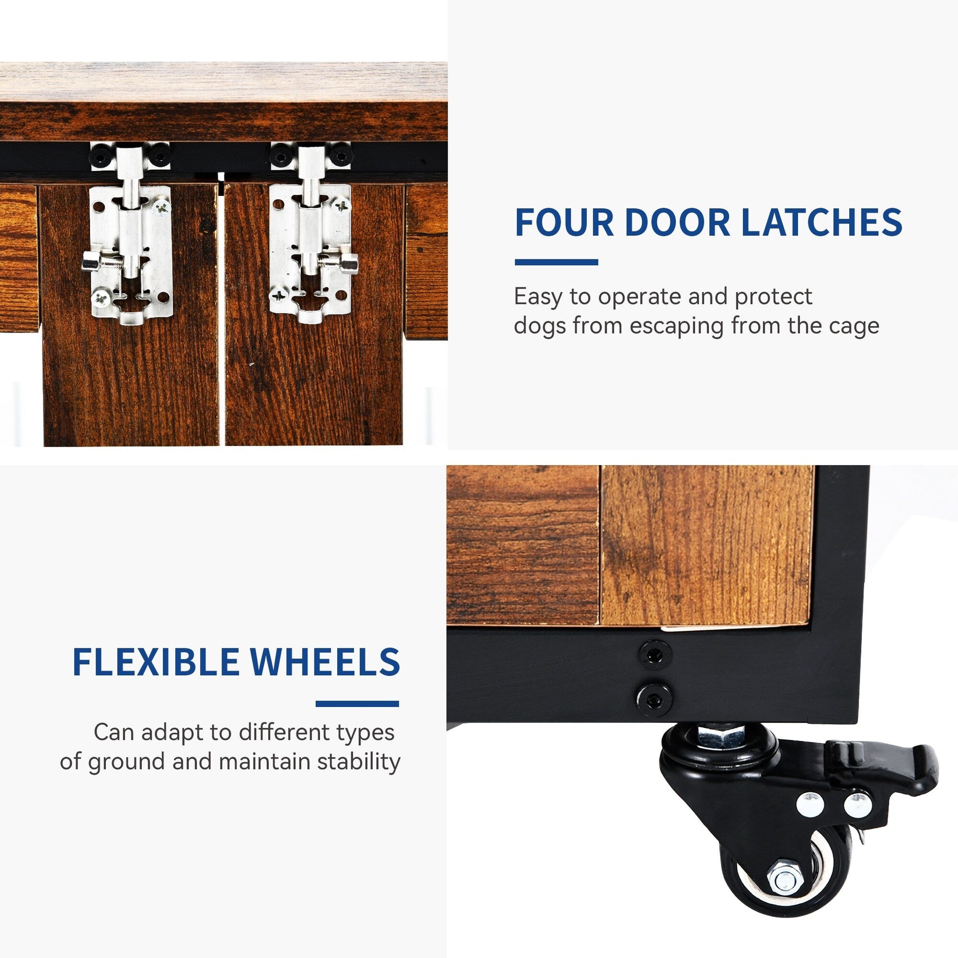 Vous cherchez encore la cage idéale pour votre chien, style meuble ? Celle-ci est bien meilleure que nos alternatives. Sa structure métallique est robuste et durable, son bois de fabrication P2 appliqué dégage moins de formaldéhyde pour la sécurité de votre animal, et sa surface renforcée la rend plus résistante aux rayures. Son design latéral ingénieux vous permet de placer la nourriture dans les gamelles et de les faire tourner sans ouvrir les portes. De plus, ses trois entrées vous permettent d'y entrer et d'en sortir votre chien à votre guise, et ses quatre roulettes avec freins vous permettent de la déplacer à l'extérieur pour profiter du soleil et de l'air frais. C'est sans aucun doute la meilleure cage, avec un design luxueux et un prix abordable.