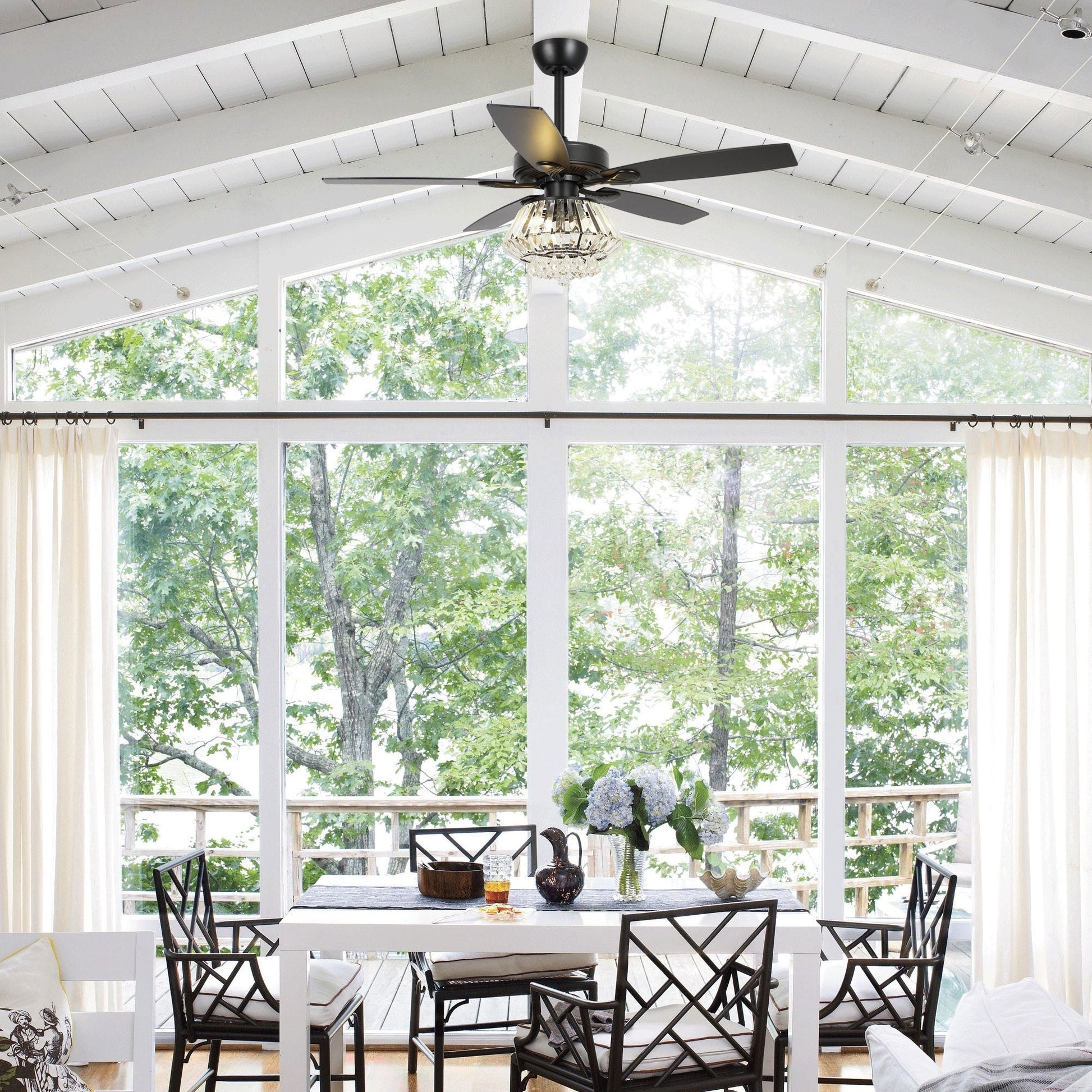 Ventilateur de plafond moderne en cristal chromé de 52 pouces avec télécommande