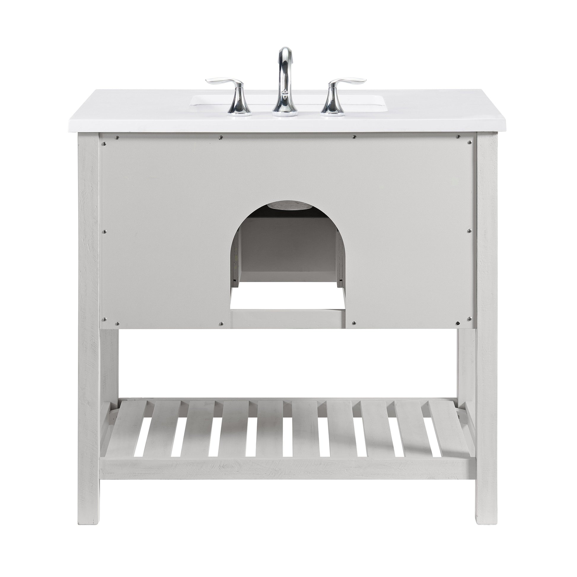 Transformez votre salle de bain en une oasis de charme côtier avec le meuble-lavabo simple Monterey de 9,4 m. Fabriqué en pin massif durable, ce meuble-lavabo simple est doté d'un plateau en similimarbre blanc massif avec des trous pré-percés pour un robinet de 2,4 m (robinetterie non incluse). Un tiroir séparé de belle taille et un tiroir supérieur rabattable offrent un grand espace de rangement pour les produits de toilette. Une étagère inférieure à lattes offre un espace de rangement supplémentaire pour les serviettes, le linge de maison et autres articles.