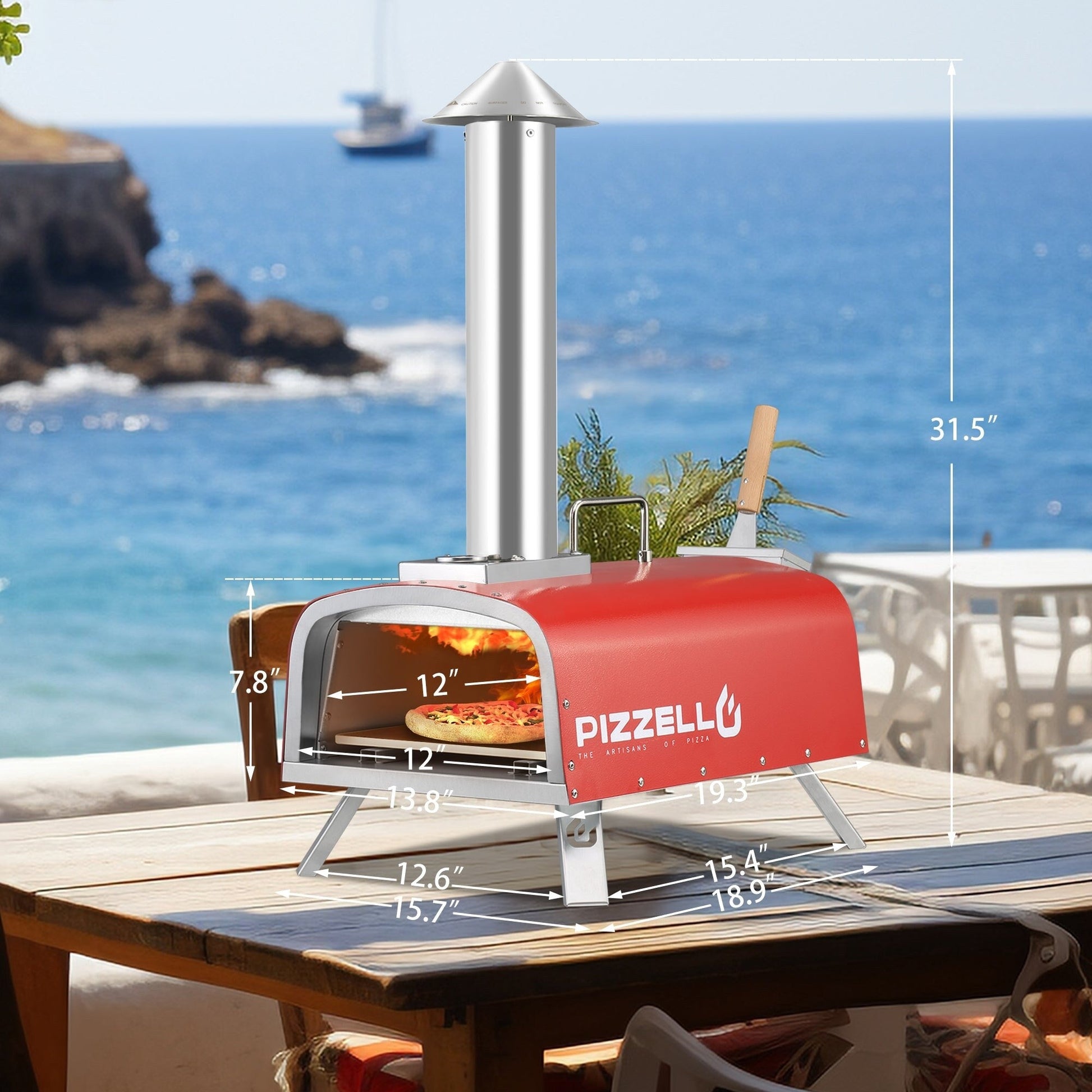 Four à pizza extérieur multi-combustible, machine à pizza cuite sur pierre avec brûleur à gaz et boîte à bois - 12 pouces
