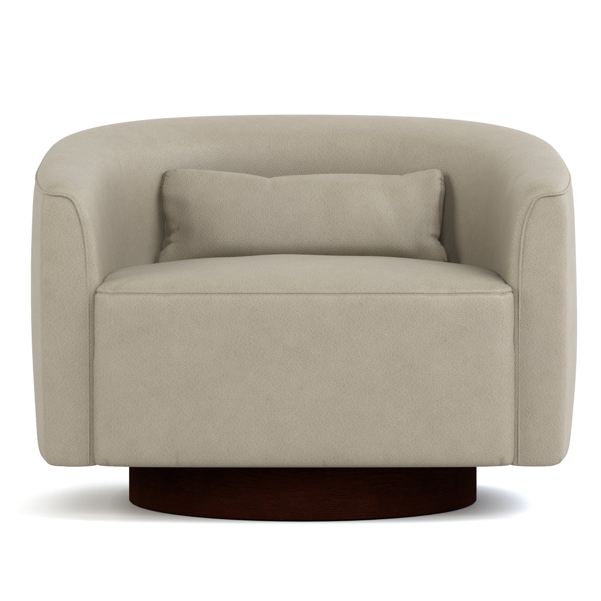 Avec ses accoudoirs évasés enveloppants, son assise ferme avec coussin lombaire et son piédestal en chêne massif, le fauteuil pivotant Oleander s'accorde parfaitement avec un canapé ou un canapé d'angle Hayward Curved. Vous pouvez acheter le fauteuil tel qu'illustré ou le personnaliser avec n'importe quel tissu ou cuir Stickley raffiné et n'importe quelle finition érable.