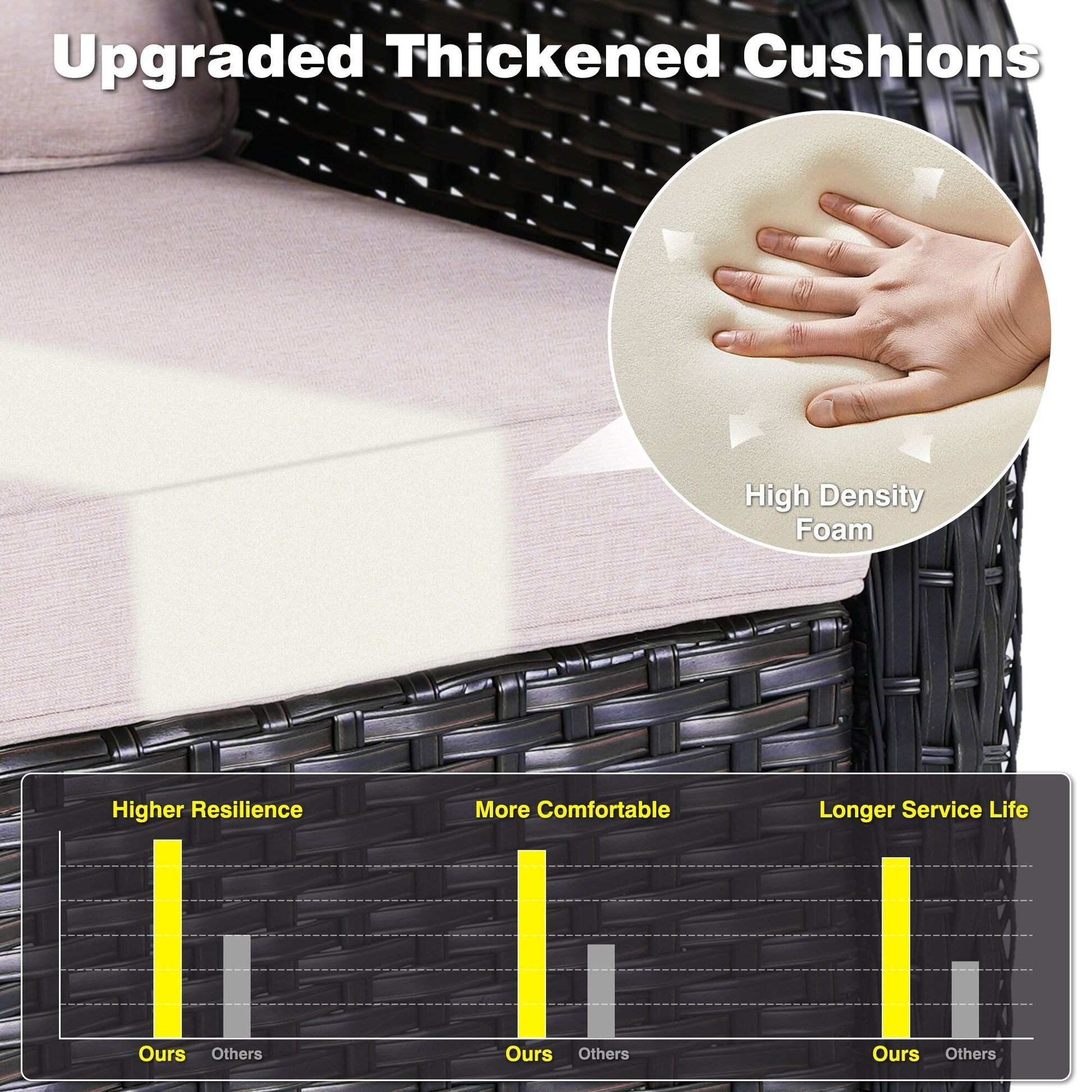Créez une oasis de détente en plein air avec l'ensemble de salon de jardin OVIOS 5 pièces en osier. Cet ensemble comprend deux fauteuils, un canapé et deux poufs, tous fabriqués en résine tressée de qualité professionnelle, résistant aux intempéries et offrant une durabilité accrue. Les épais coussins d'assise en éponge offrent confort et détente, tandis que les dossiers hauts et les accoudoirs incurvés offrent un soutien ergonomique. Grâce à ses housses imperméables et faciles à nettoyer, cet ensemble est parfait pour votre terrasse, votre véranda, votre bord de piscine ou votre jardin. Choisissez parmi plusieurs coloris pour sublimer votre espace extérieur et l'adapter à votre style.
