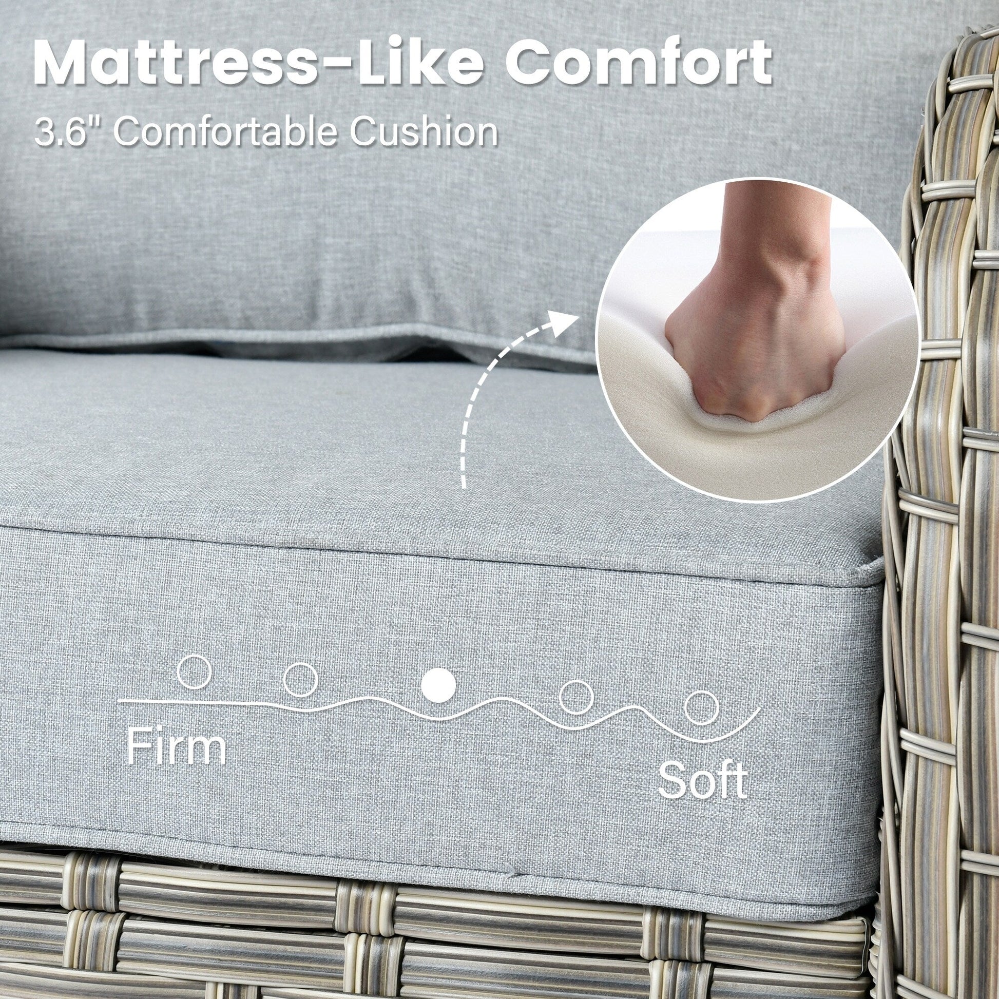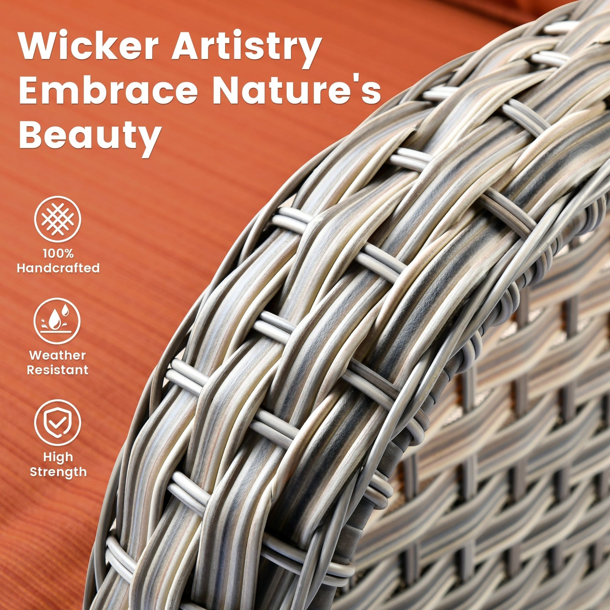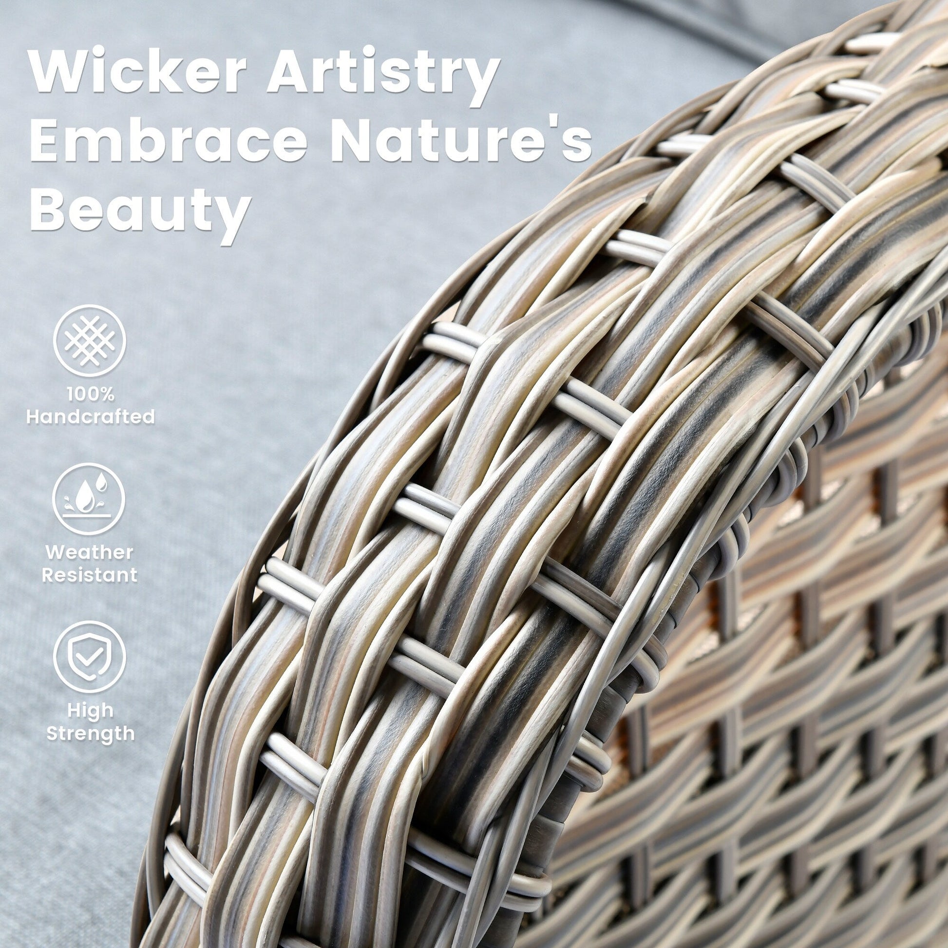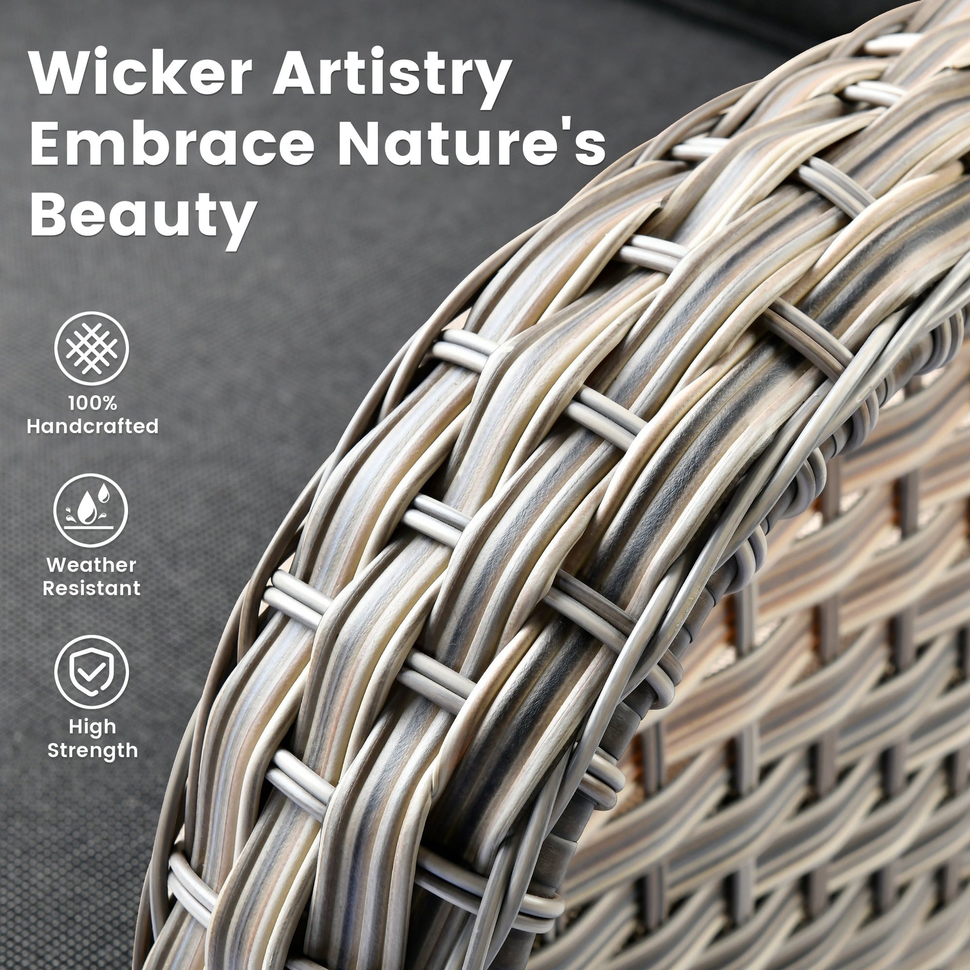 Sublimez votre espace extérieur avec cet ensemble de mobilier d'extérieur haut de gamme en osier, comprenant désormais un élégant foyer en métal, conçu pour allier style, confort et fonctionnalité. Idéal pour les réunions de famille, les fêtes en plein air ou pour se détendre en toute tranquillité, cet ensemble offrira le cadre idéal en toute occasion.