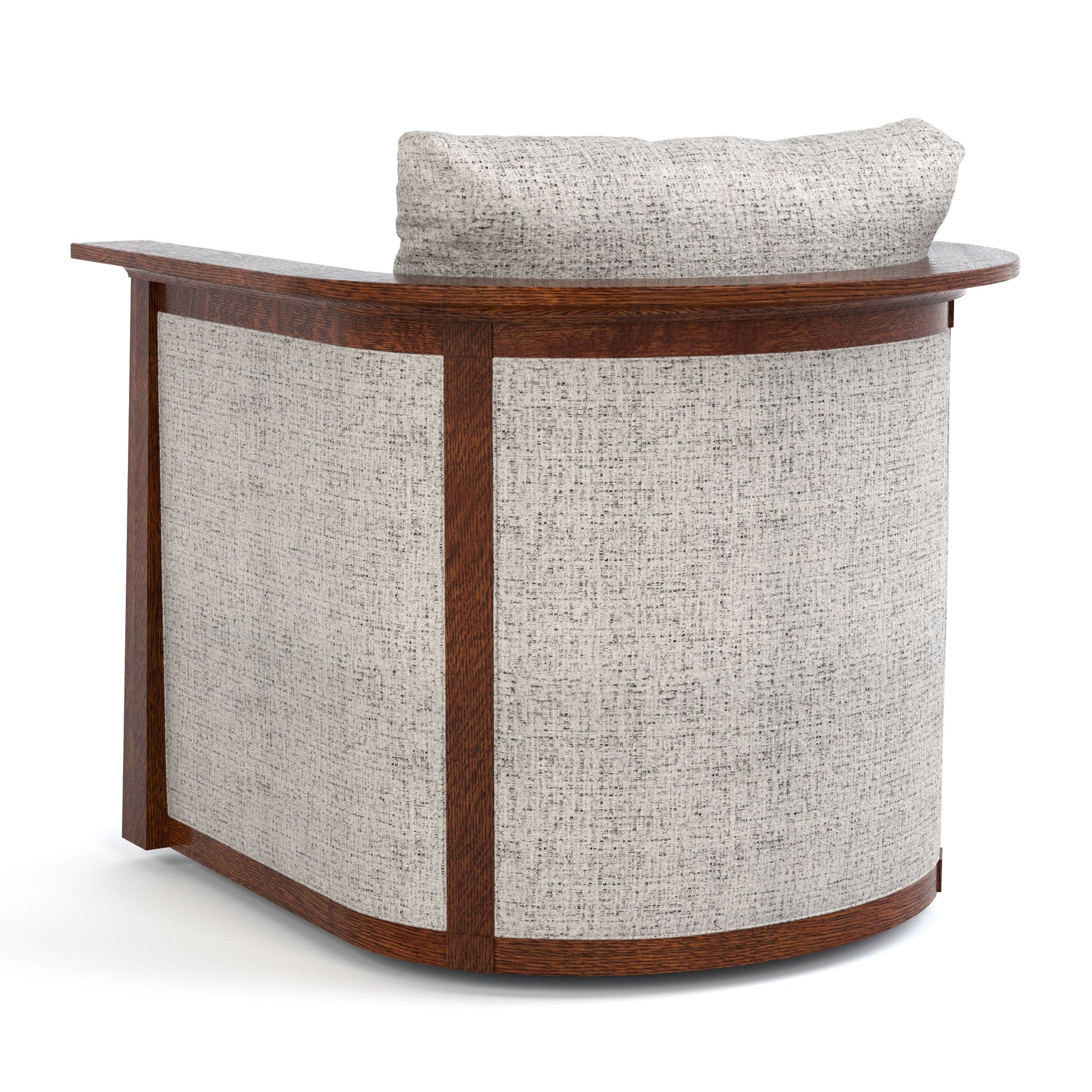 Nous avons créé une nouvelle option pour la collection Park Slope en revisitant le design de notre chaise Park Slope originale. Au lieu de barreaux dans la structure enveloppante, cette version est dotée de larges panneaux rembourrés et de pieds coniques inversés remplacés par une base pivotante robuste. Des accoudoirs confortables et des coussins d'assise et de dossier moelleux créent une sensation de confort enveloppant.