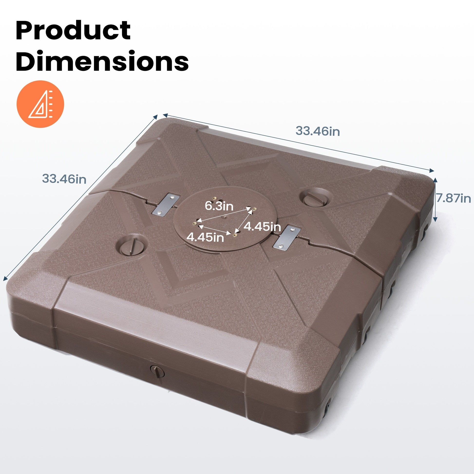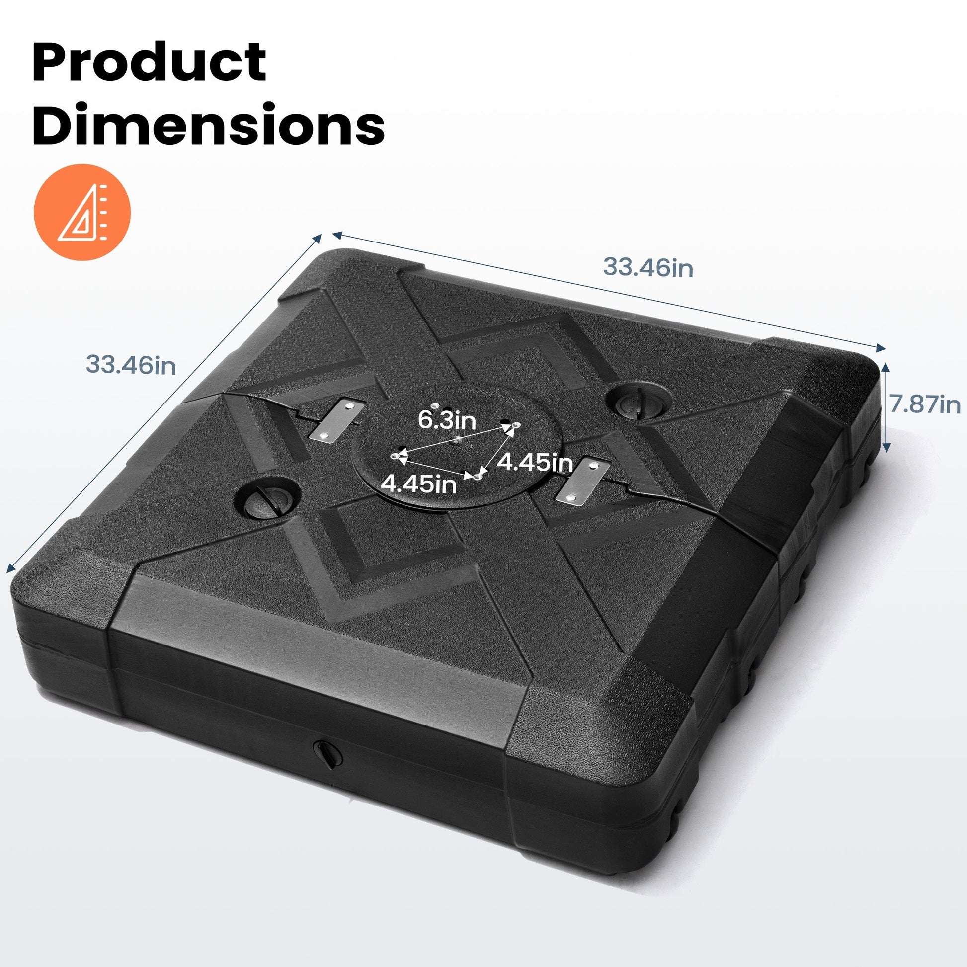- Dimensions hors tout : 33,46 pouces de long x 33,46 pouces de large x 7,87 pouces de haut
