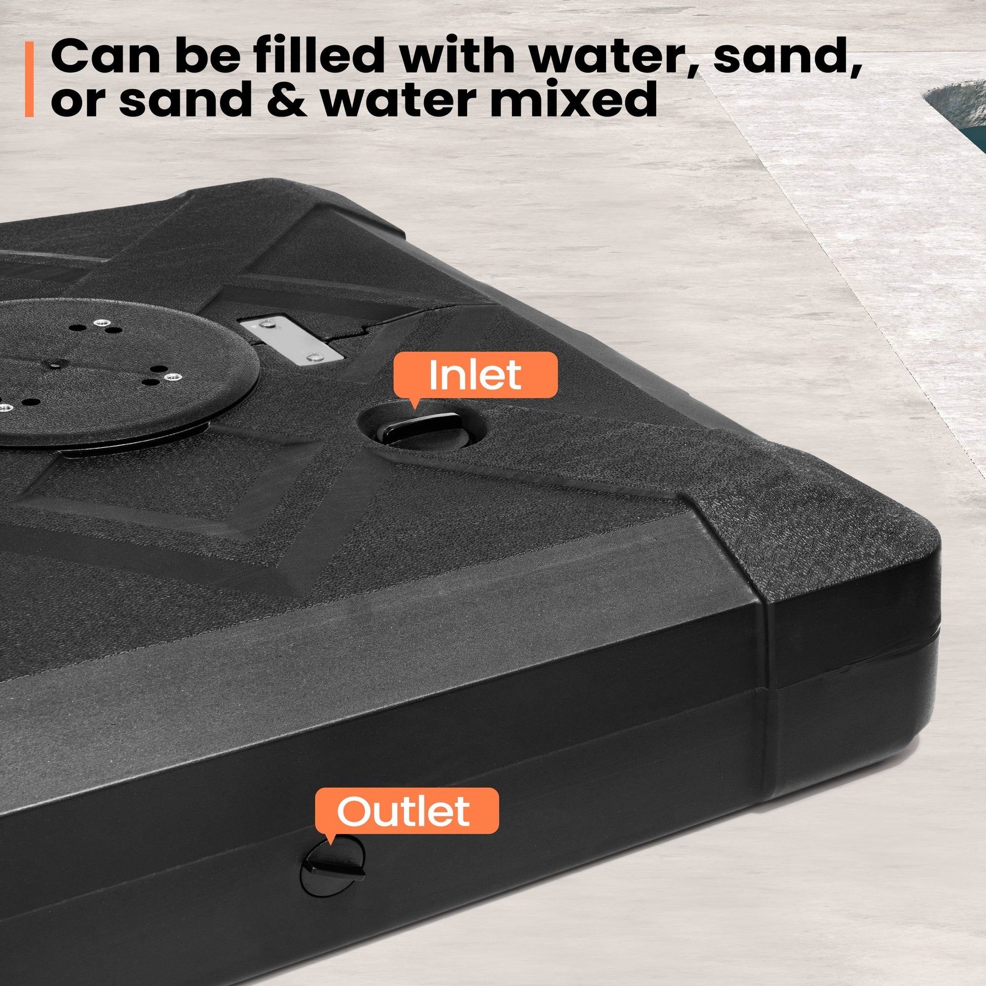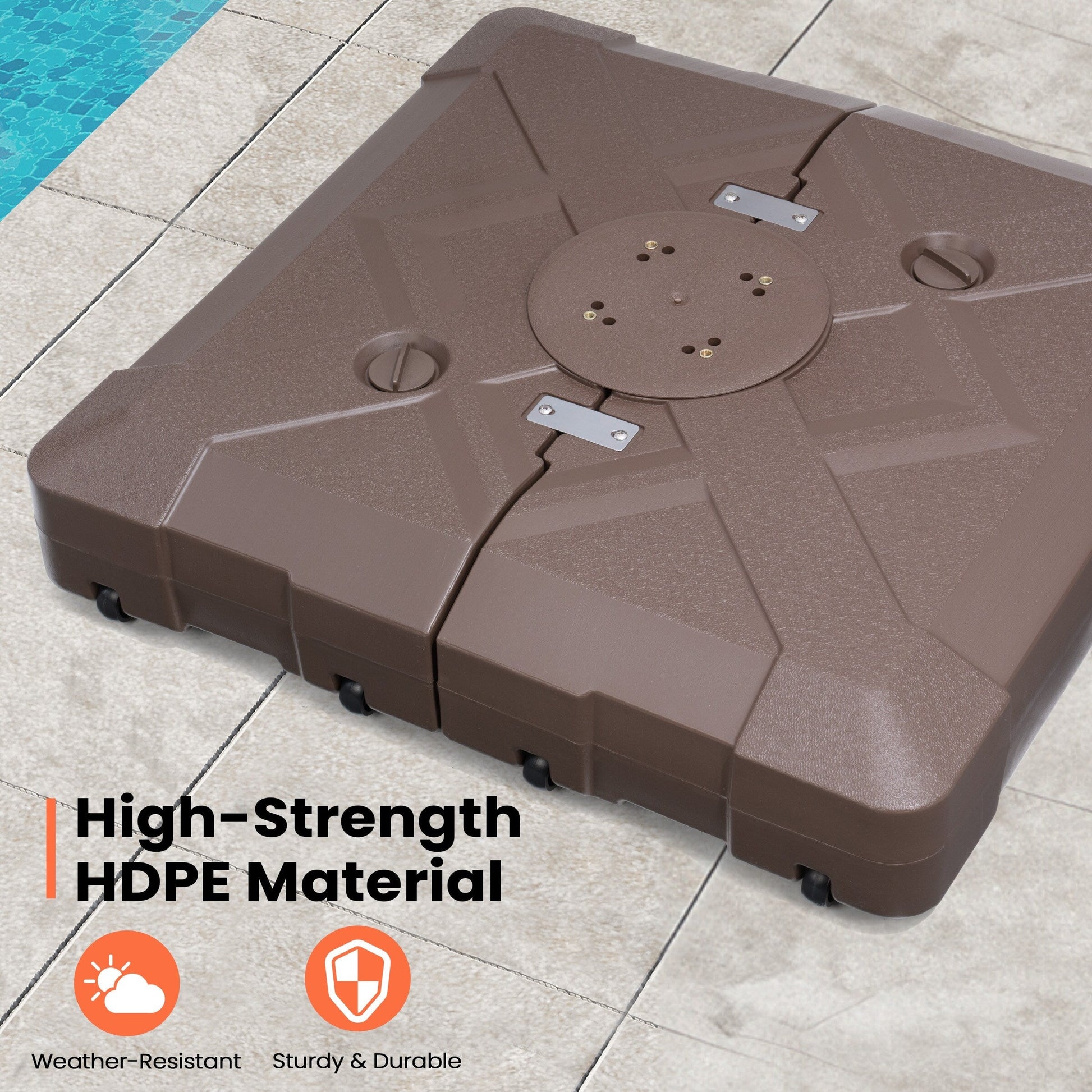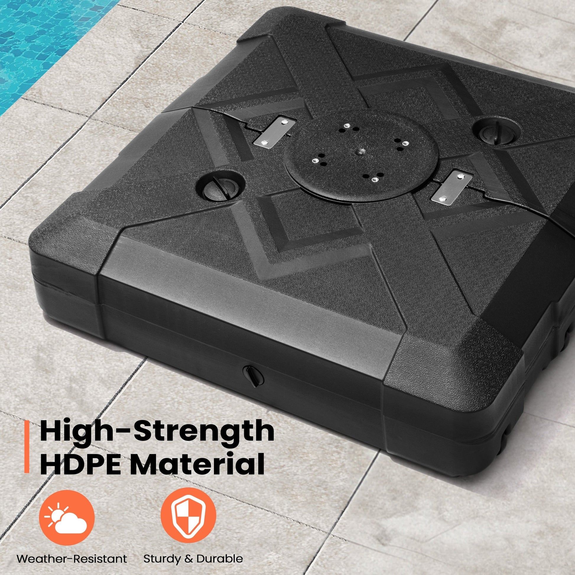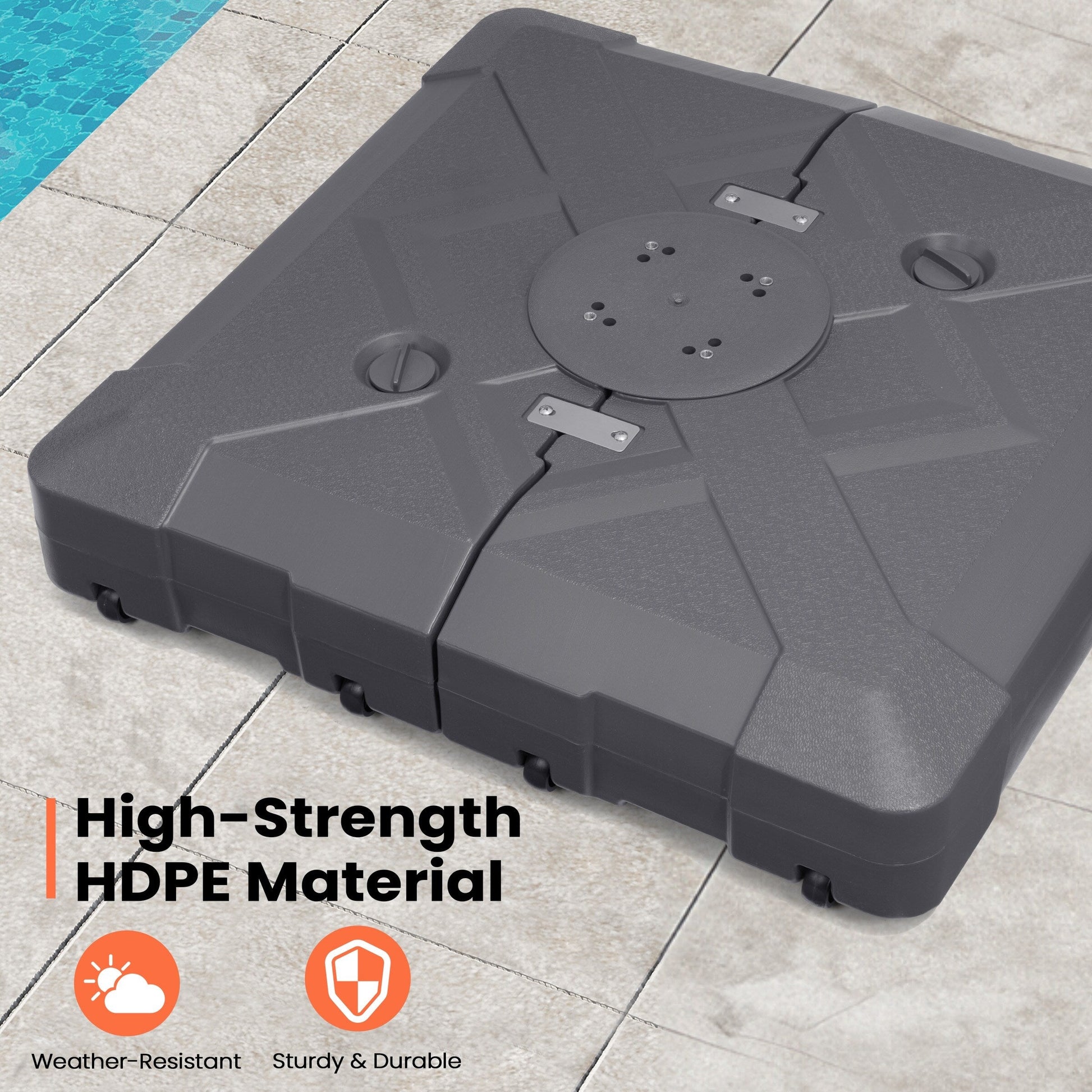 Sécurisez votre espace extérieur et donnez un aspect 3D grâce à ce pied de parasol déporté de 100 kg avec roulettes de Pellebant. Ce poids peut être rempli d'eau ou de sable pour plus de stabilité et de soutien. Il empêche votre parasol de s'envoler par temps venteux.