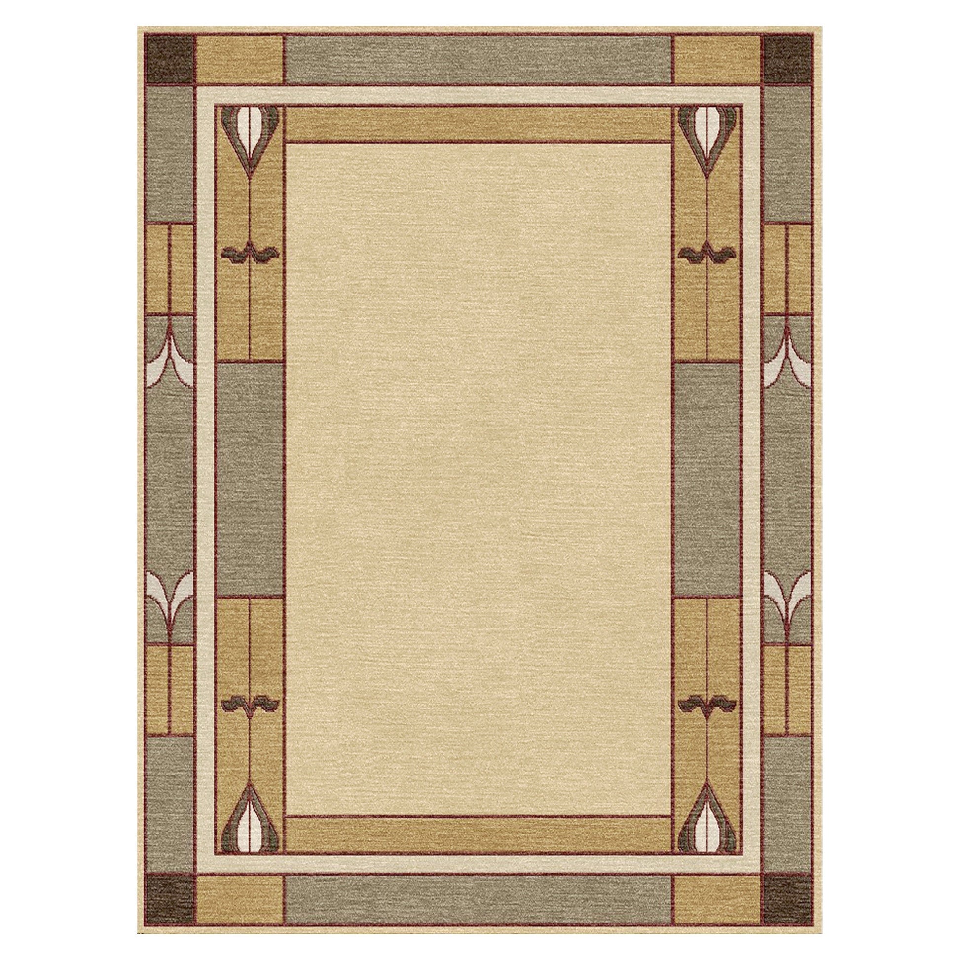 Le tapis Prairie Studio présente une double bordure géométrique aux motifs inspirés de l'école Prairie de Frank Lloyd Wright. Il est noué à la main en laine de mouton des hautes terres de l'Himalaya par des tisserands népalais qualifiés. Les dimensions varient de 80 cm x 120 cm à 30 cm x 43 cm et comprennent des rectangles, des tapis de couloir, des tapis ronds et des tapis carrés ; des dimensions sur mesure sont également disponibles.