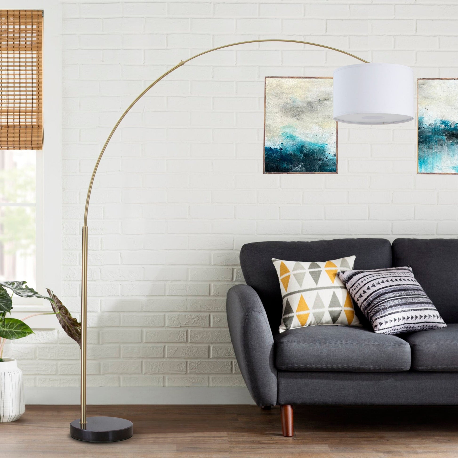 Lampadaire arqué réglable en acier Q-Max 81 avec abat-jour extra large et base en marbre