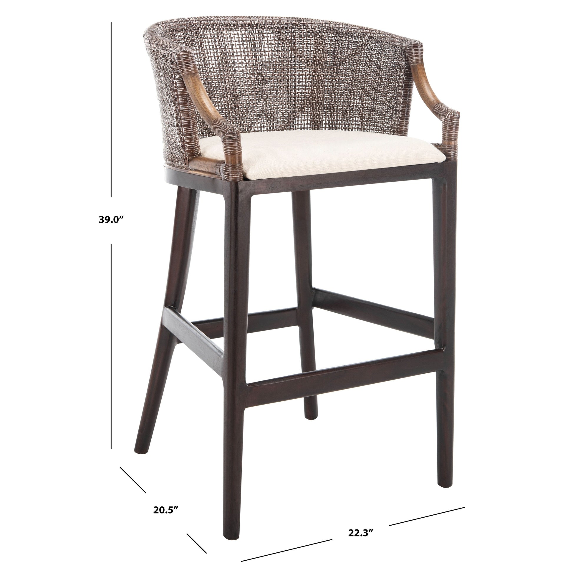 Tabouret de bar en rotin SAFAVIEH Virona de 76 cm (22,3 po l x 20,5 po l x 39 po H)