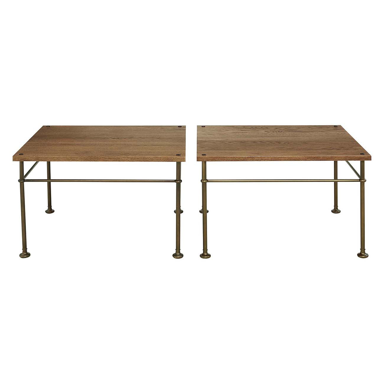 Pour la table basse St. Lawrence Bunching, nous avons placé un plateau en chêne massif sur des pieds ronds en métal qui en percent la surface ; des pieds en métal tourné et des traverses horizontales stabilisent le piètement sur tous les côtés. Regroupez deux ou plusieurs de ces tables aux matériaux variés ou utilisez-en une seule, selon vos besoins.