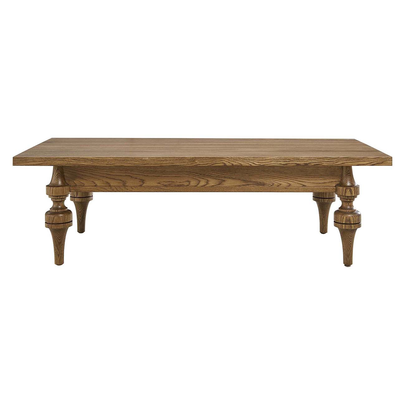 La table basse et la table d'appoint St. Lawrence, toutes deux tournées, sont des pièces d'appoint traditionnelles à première vue, mais elles partagent l'esthétique subtilement revisitée de la collection. Entièrement fabriquées en chêne massif, elles sont dotées de pieds tournés aux bandes nettes et nettes, d'une ceinture de liaison et d'un plateau en dalle qui met en valeur le veinage cathédrale texturé du bois.