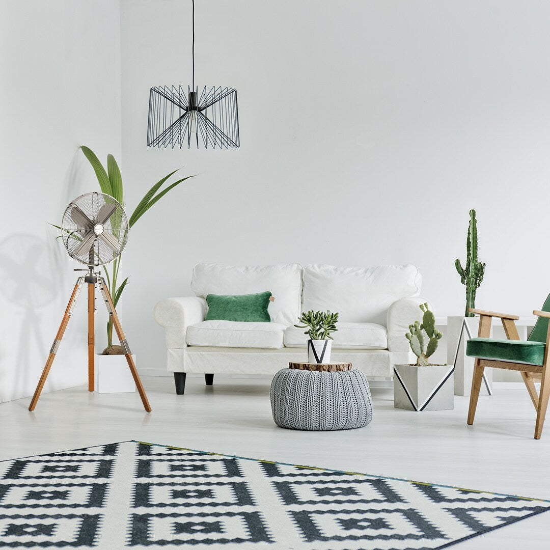 Inspiré d'un pied d'appareil photo, ce ventilateur sur pied à trépied au design industriel soigné offre un puissant mouvement d'air. De haute qualité et de fabrication artisanale, ce trépied se démarquera et apportera une touche artistique et inspirante à tout espace. La hauteur du trépied est réglable lors de l'assemblage, un processus facile. Un bouton situé au-dessus du moteur permet de régler l'oscillation et l'angle d'inclinaison.