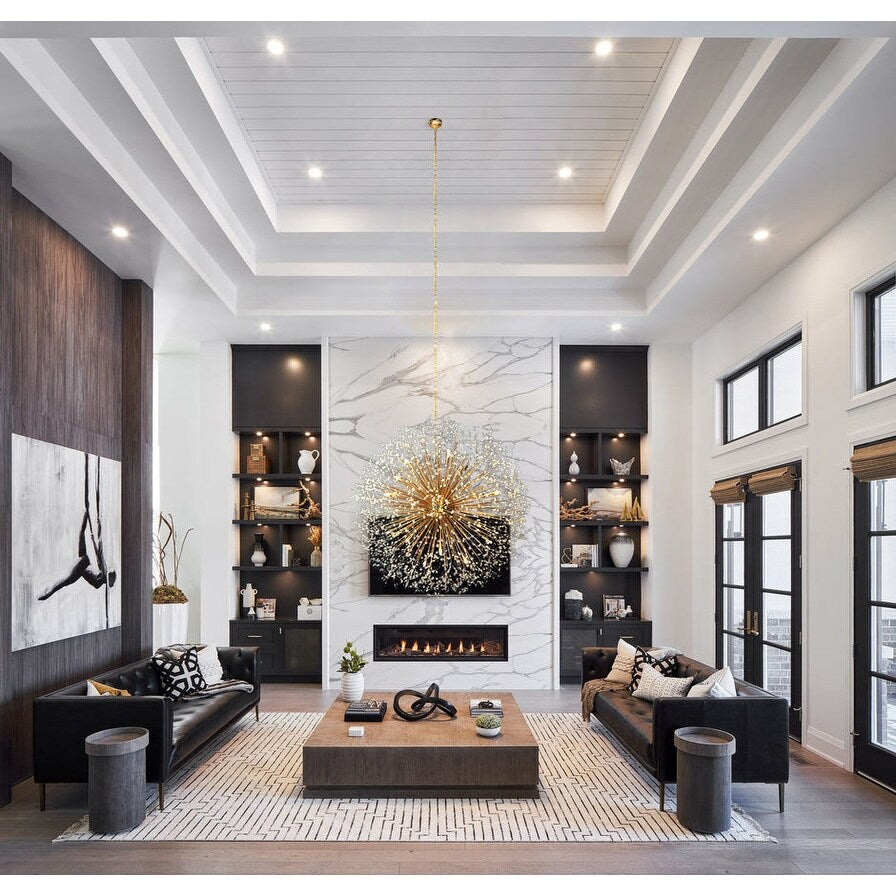 Ce lustre au style unique est composé de multiples cristaux et éléments décoratifs. Le cristal est brillant et ne s'écaille pas, ne se décolore pas et ne ternit pas. Une décoration intérieure en cristal apportera à votre pièce la touche glamour dont elle a besoin et s'harmonisera facilement avec votre décoration actuelle. Son design étoilé en diamant offre un plaisir visuel magnifique et luxueux. Les étoiles silencieuses scintillent d'une lumière vive, évoquant un pissenlit et un feu d'artifice. Lorsque la lumière éclaire les perles de cristal, elles projettent des centaines de prismes arc-en-ciel dans l'air.