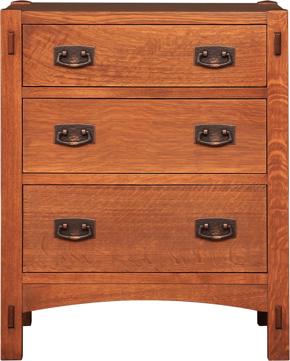 Table de chevet aux proportions élégantes, dotée de trois tiroirs suspendus et d'un tiroir central, cette pièce fait partie de la collection Mission rééditée en avril 1989. Disponible en chêne massif.