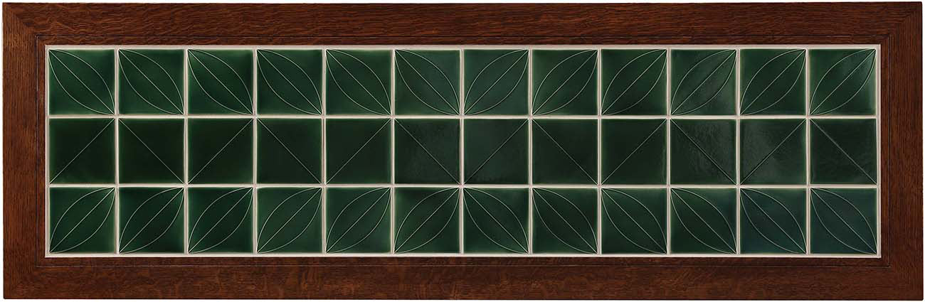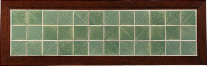 La silhouette polyvalente de cette console est magnifiquement mise en valeur en cerisier ou en chêne massif. Une configuration attrayante de carreaux verts sculptés à la main, provenant de North Prairie Tileworks, apporte une touche contemporaine à ce meuble classique. Ses caractéristiques de construction ancestrales, notamment ses deux tiroirs latéraux à guidage central et son assemblage à tenons et mortaises, en font un meuble qui se transmettra de génération en génération.