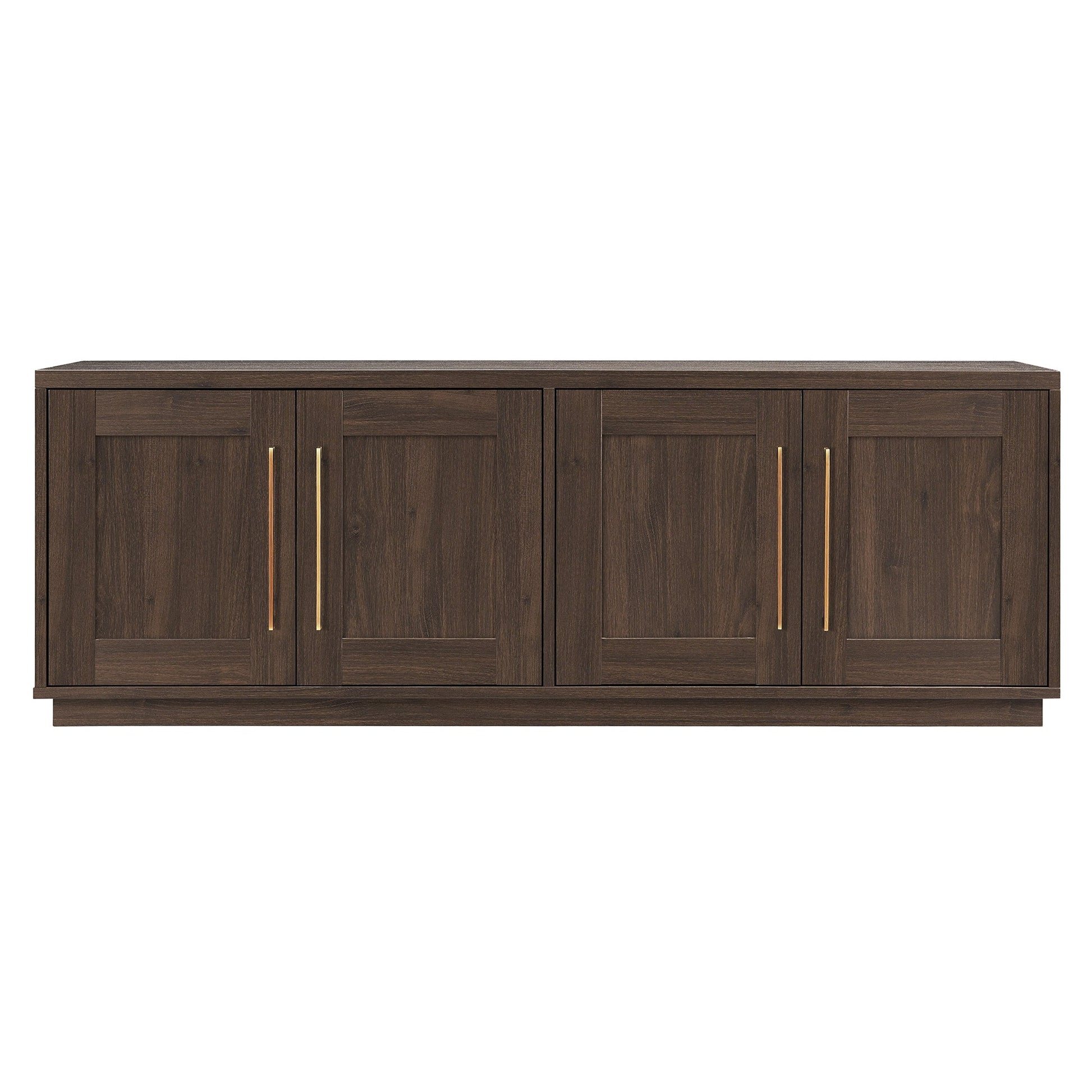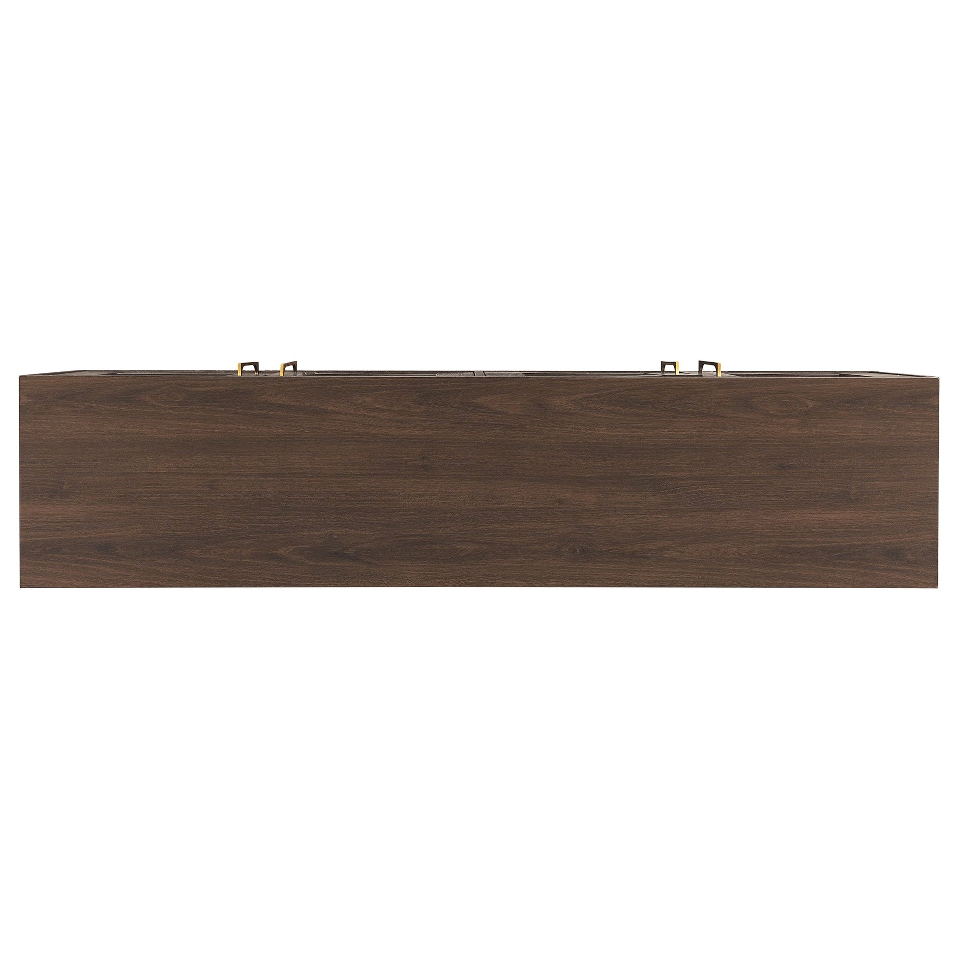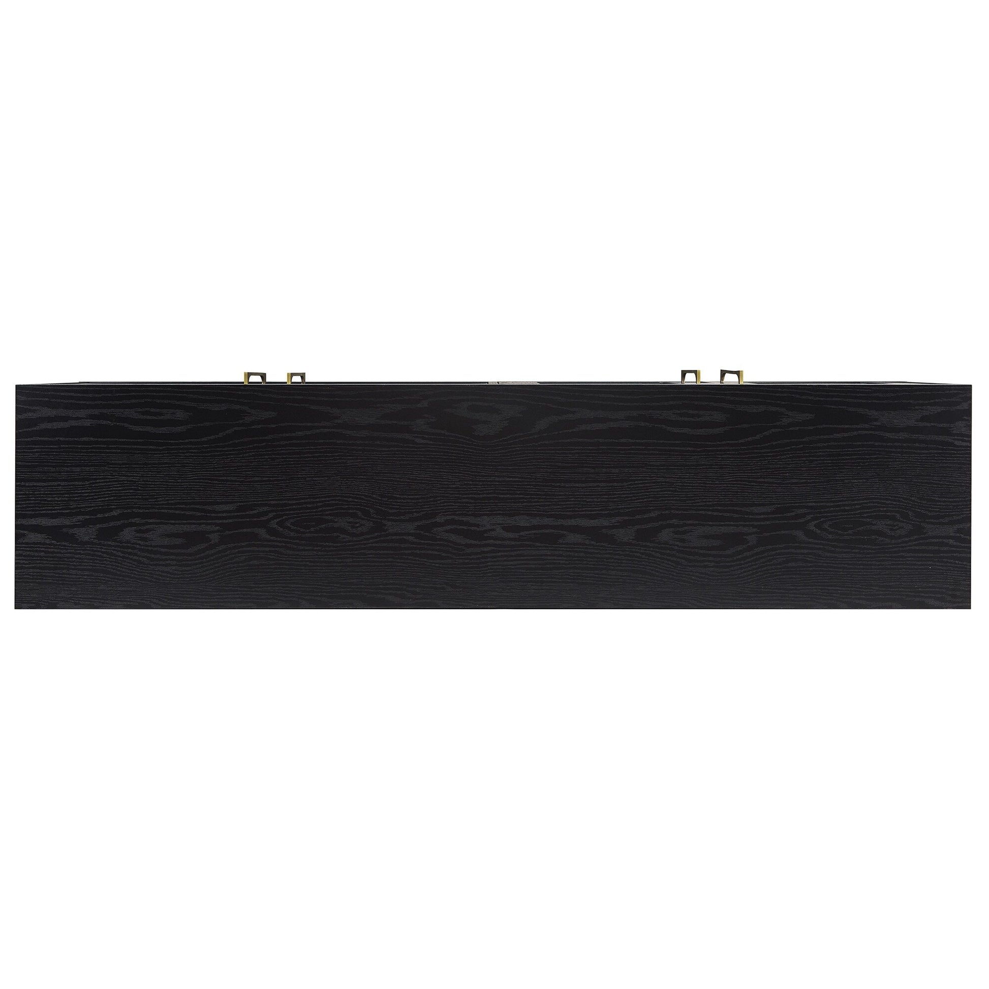 Alliez fonctionnalité et design transitionnel classique avec ce meuble TV moderne. Son bois riche crée une palette neutre et chaleureuse qui s'harmonisera parfaitement avec toutes les palettes de couleurs, tandis que son style classique s'harmonise parfaitement avec le style de votre salon, bureau ou salle de jeux. Ce meuble à dossier massif est doté de deux grands caissons fermés avec une élégante quincaillerie finition laiton. Des découpes pour la gestion des câbles et des étagères intérieures réglables permettent d'organiser vos rangements multimédias et vos consoles.