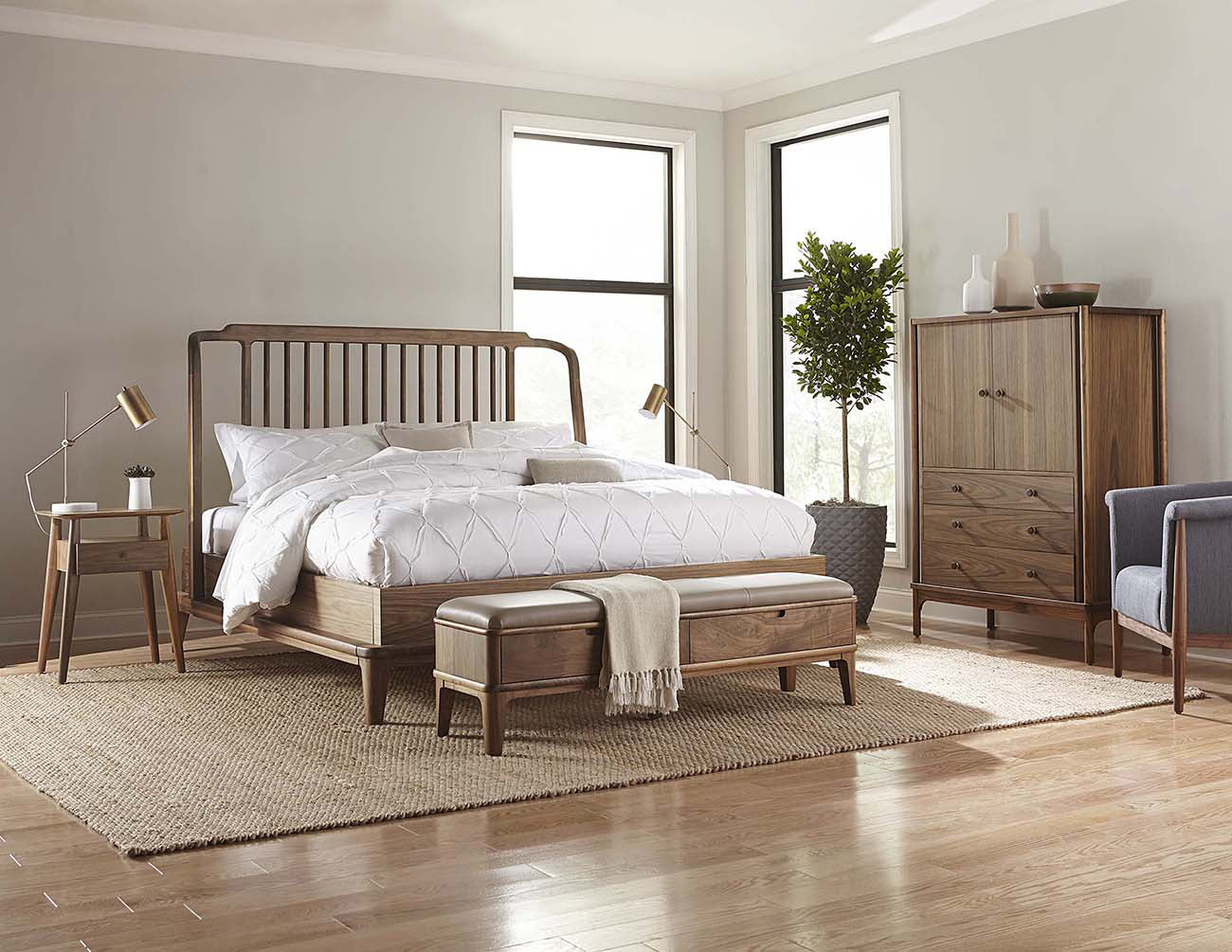 Le banc Walnut Grove offre une assise au rembourrage dense reposant sur des pieds fuselés et élégants, ainsi que deux tiroirs spacieux et fonctionnels. Son design moderne du milieu du siècle s'adapte à tous les intérieurs et son assise est disponible en tissu uni ou en cuir Salvador Dove.