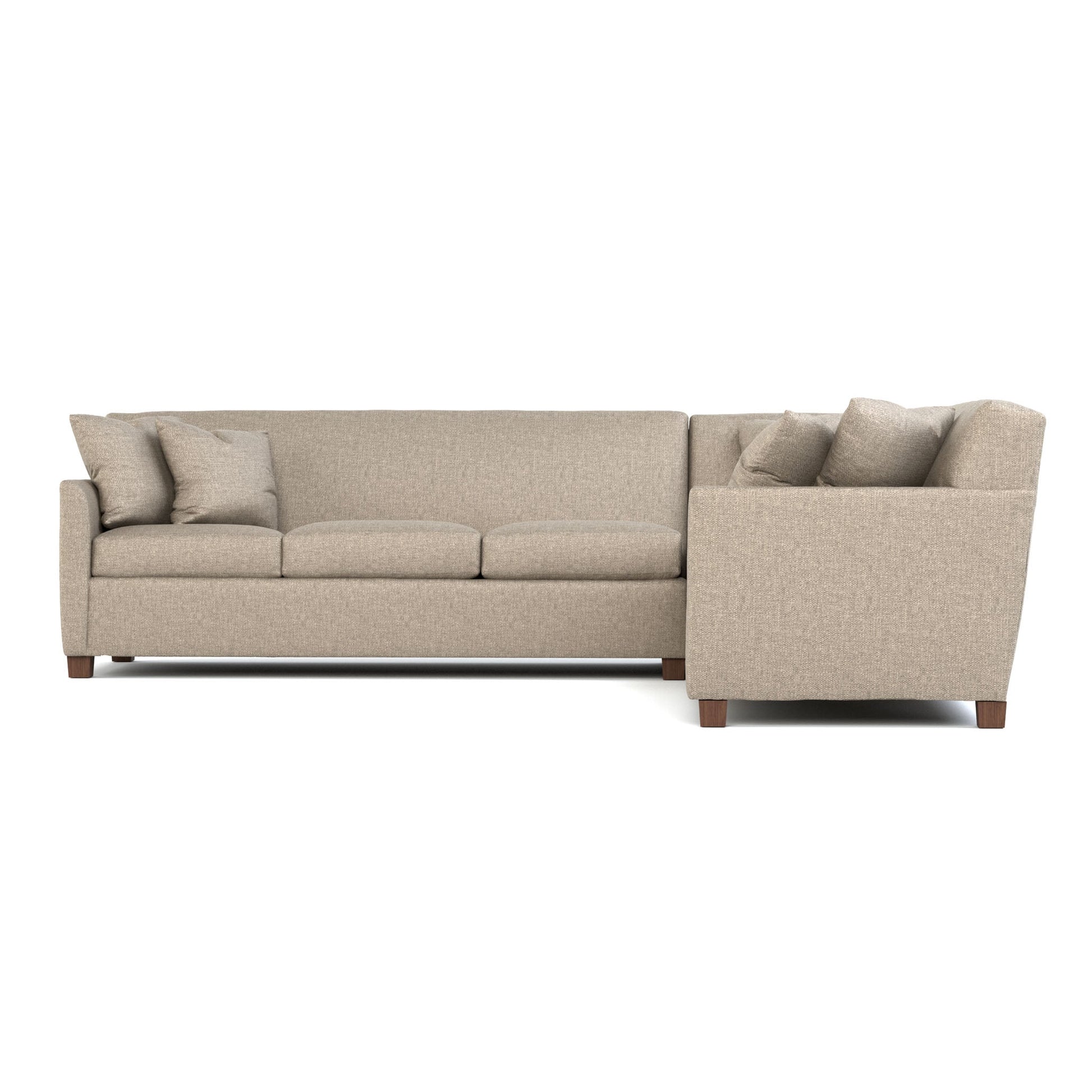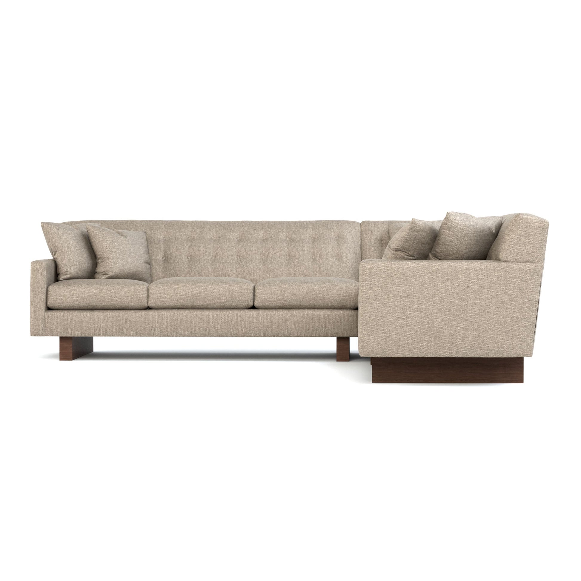 Avec le système Walnut Grove « Design-Your-Own » de style milieu du siècle, neuf modules modulaires offrent une variété d'options d'assise polyvalentes et généreuses. Chaque configuration, y compris ce module modulaire en L combinant canapé, canapé d'angle carré et causeuse, est personnalisable avec un dossier capitonné ou ajusté, trois styles d'accoudoirs et trois styles de piètement.